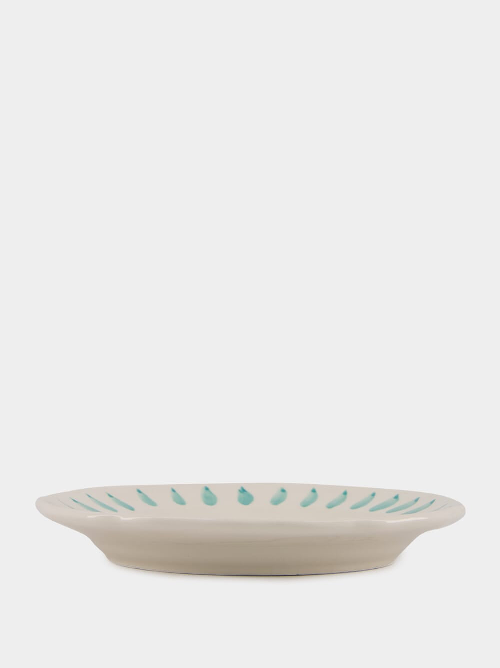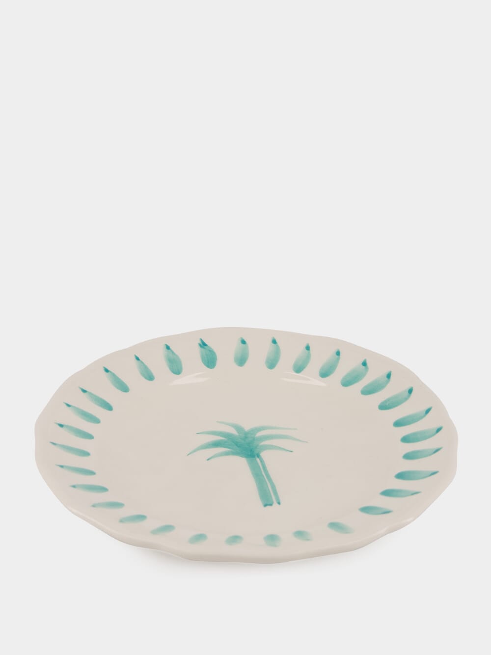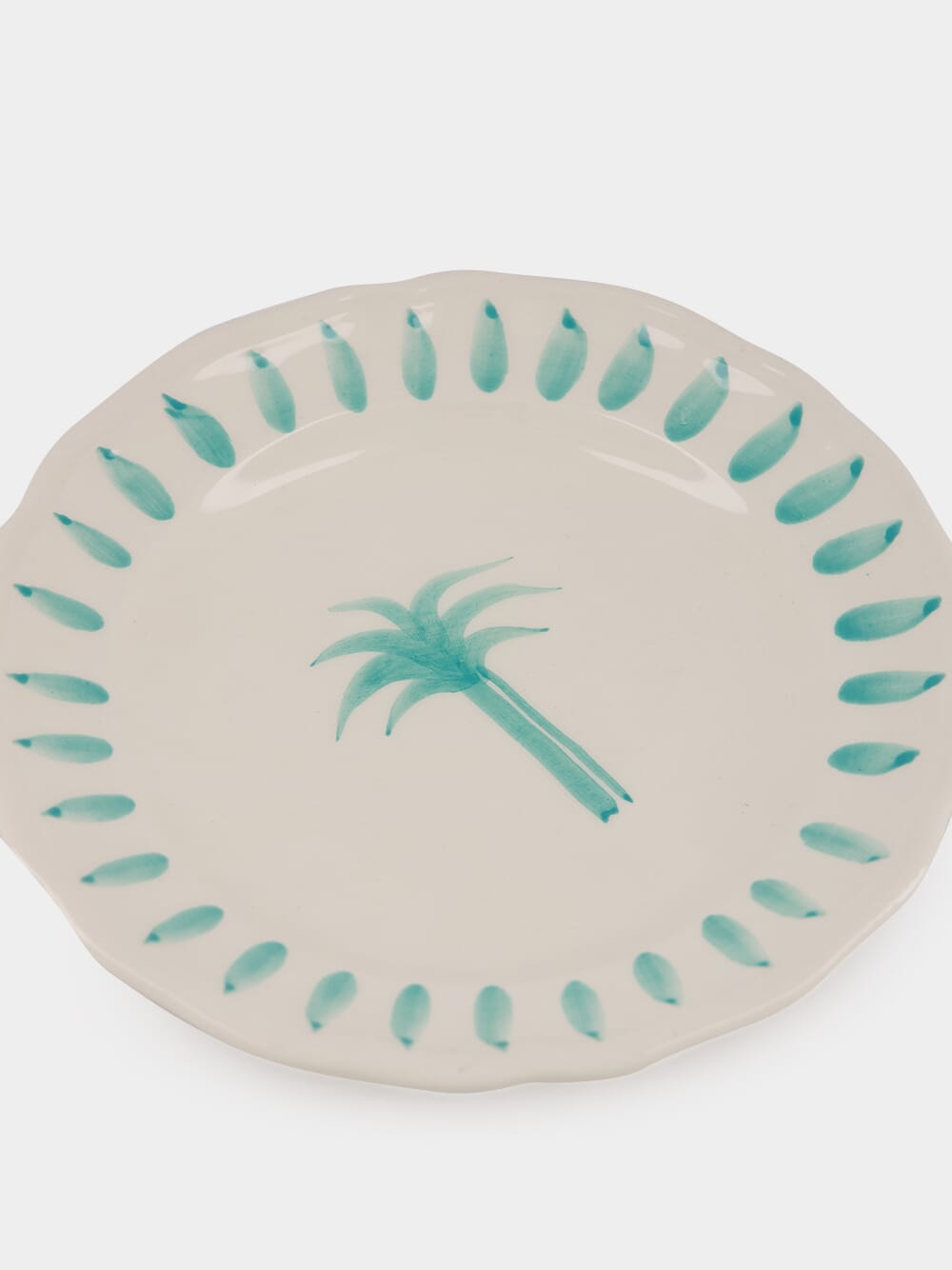 Les Ottomans Tropical Palm white and blue handpainted ceramic dessert plate.
