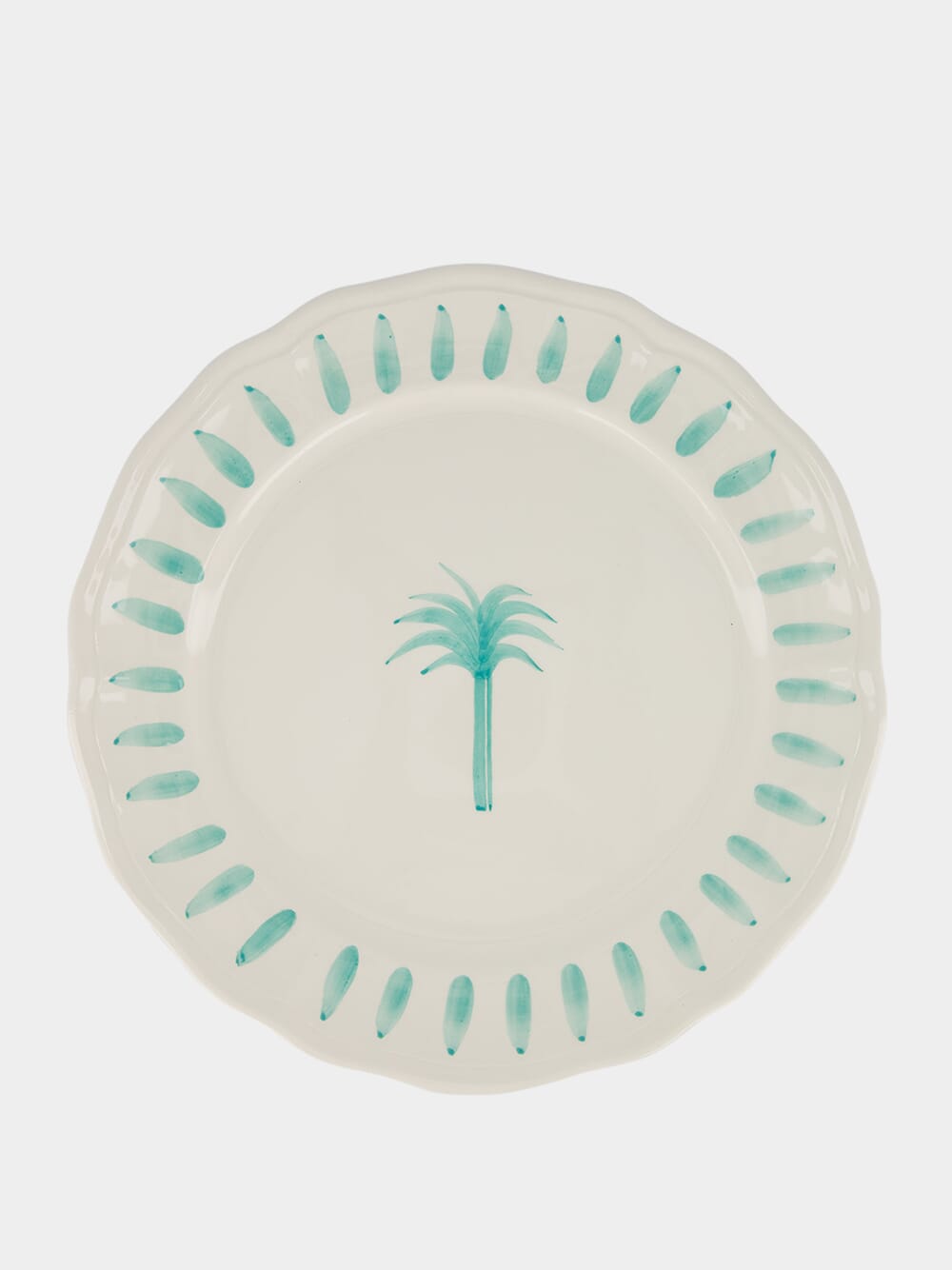 Les Ottomans Tropical Palm white and blue handpainted ceramic plate.