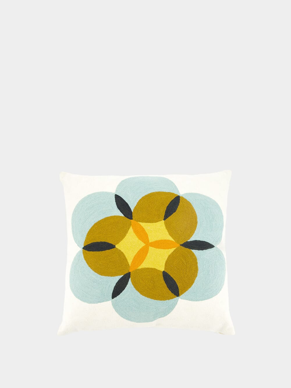 Gloria Cushion from Lindell & Co, a stunning hand-embroidered masterpiece in chain stitch. Elevate your home decor with this exquisite cushion, showcasing the artistry and craftsmanship of skilled artisans. Please note that slight variations in color shades are expected, adding a unique touch to each handmade product.