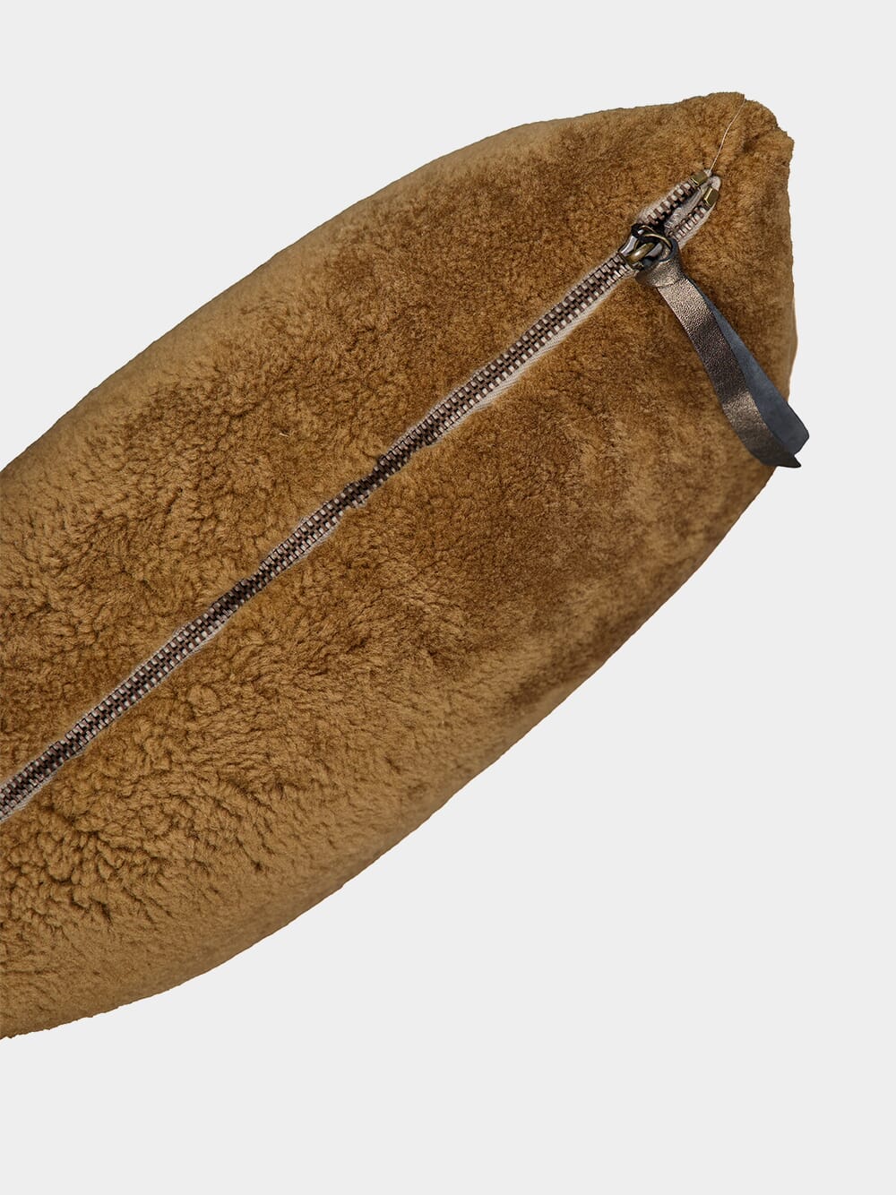 Crafted from premium sheep bouclette material for ultimate comfort and style. This cushion is thoughtfully designed with a convenient zipper and a luxurious leather tag, adding a touch of elegance to your home decor.