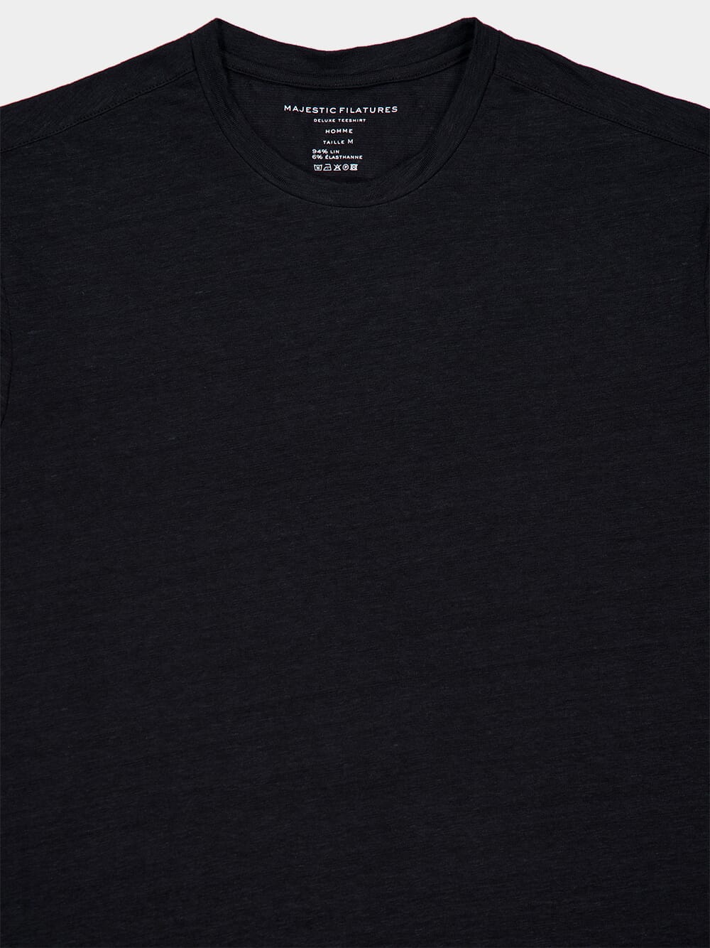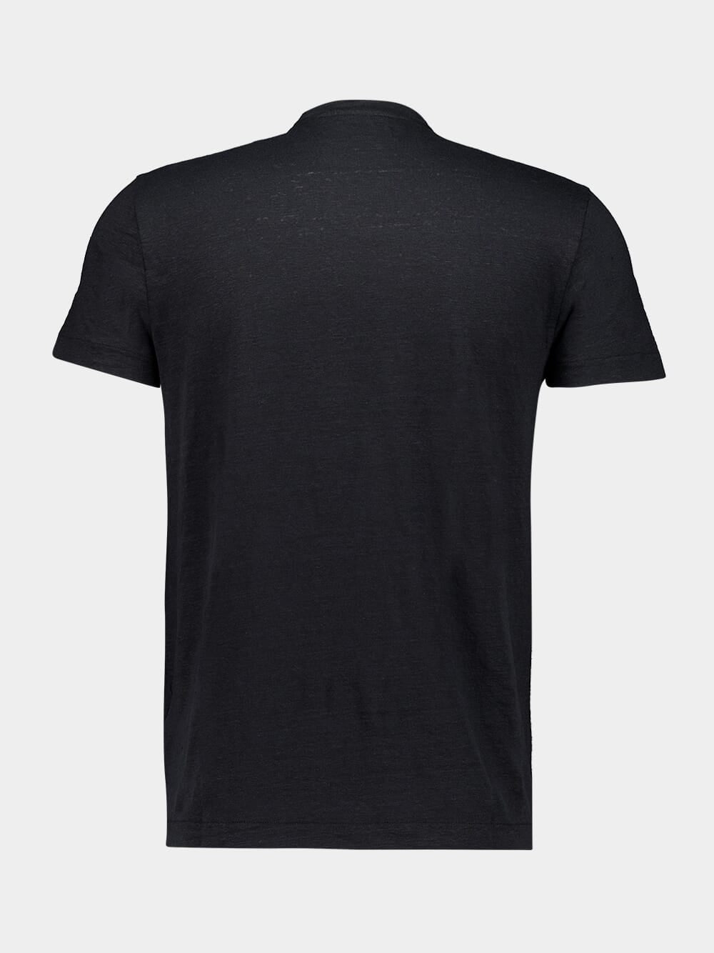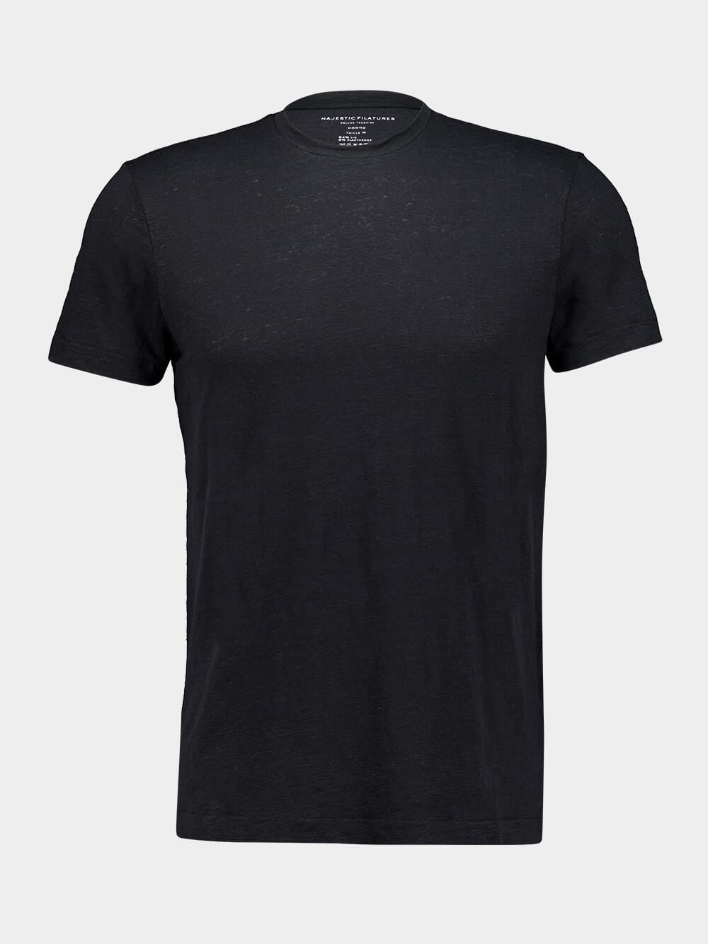This black round neck t-shirt, made from a blend of European linen and elastane, offers a fluid and lightweight feel. The natural linen fabric provides breathability and comfort, while elastane ensures the shirt retains its shape and flexibility. With a classic straight cut and short sleeves, this t-shirt is ideal for casual or refined looks. Pair it with jeans or matching linen shorts for a timeless, elegant outfit.