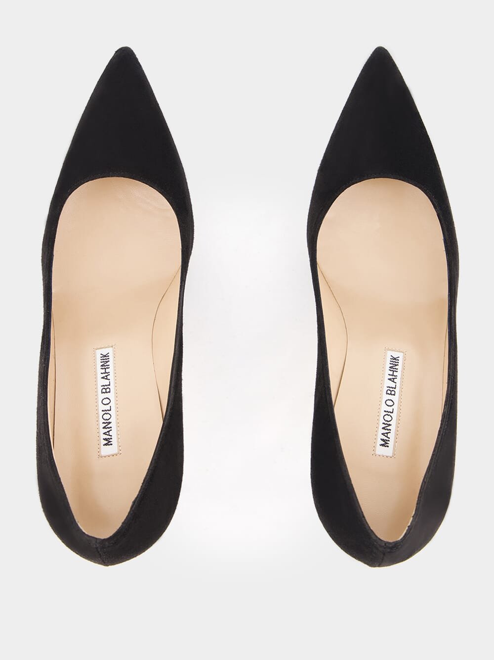 Manolo Blahnik BB 70 black suede leather pumps with pointed toe and a mid heel.