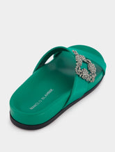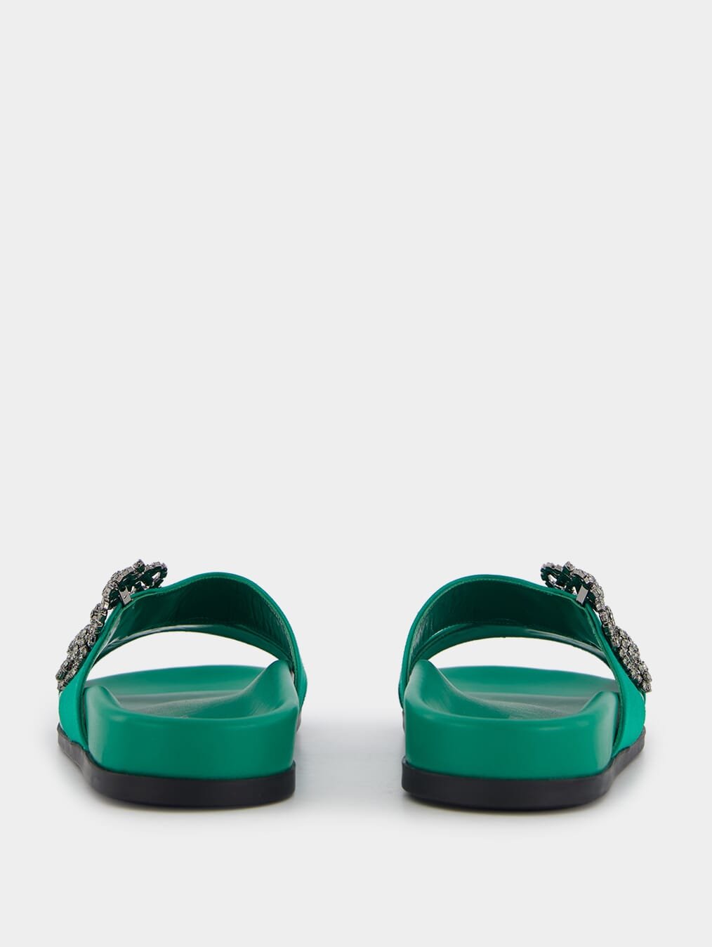 Chilanghi Black Satin Jewel Buckle Flat Mules