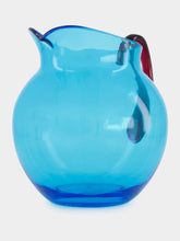 This elegant turquoise/ruby pitcher features a sleek, rounded design that adds a touch of sophistication to any table setting. Crafted from high-quality glass, it is perfect for serving beverages, combining both durability and aesthetic appeal. The pitcher’s vibrant turquoise hue with a contrasting ruby handle and classic shape make it a standout piece, ideal for both casual gatherings and formal occasions.