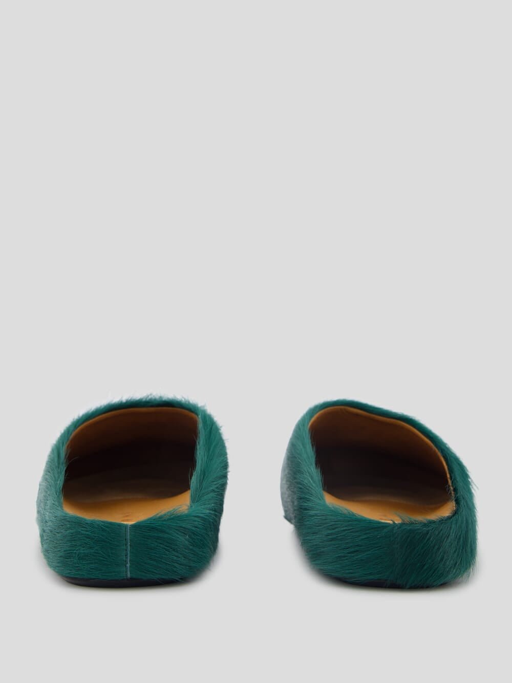 Calf Hair Slippers, crafted from exquisite long hair calf leather, providing a sleek and sophisticated look. Enjoy a barefoot feeling with the Fussbett inner sole in leather, while the ribbed rubber sole ensures durability and traction.