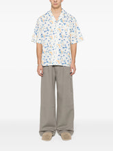 Exuding playful charm, this logo-print cotton shirt is adorned with a lively blue and orange floral pattern. Its relaxed cut and short sleeves make it a perfect companion for summer outings, reflecting a blend of casual elegance and joyful style.