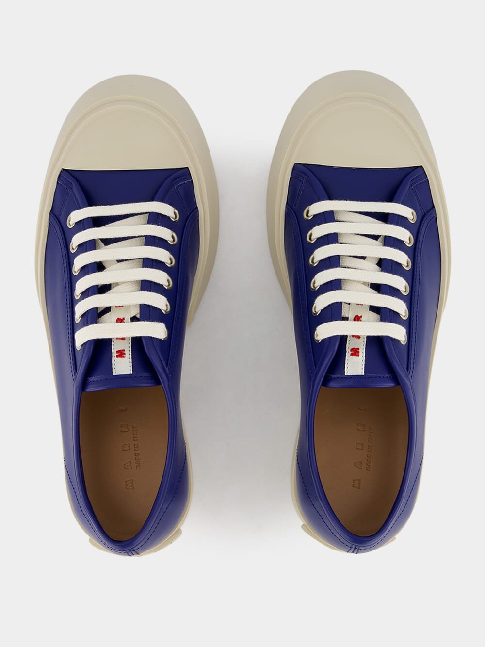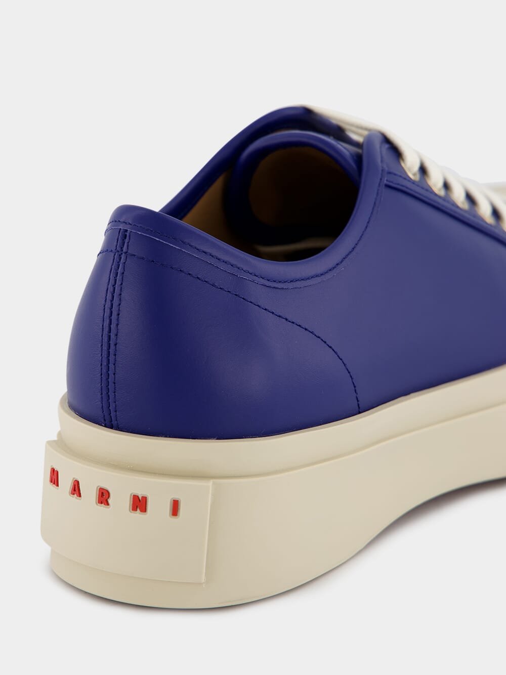 Pablo Low-Top Leather Sneakers, crafted with precision in nappa leather, these lace-up sneakers exude luxury and durability. The leather lining ensures breathability and a plush feel. Adorned with a satin Marni label on the shoe tongue, these sneakers boast a touch of sophistication. The soft leather insole provides unmatched cushioning, while the chunky rubber platform sole featuring the iconic Marni logo at the back offers a trendy and confident stride.