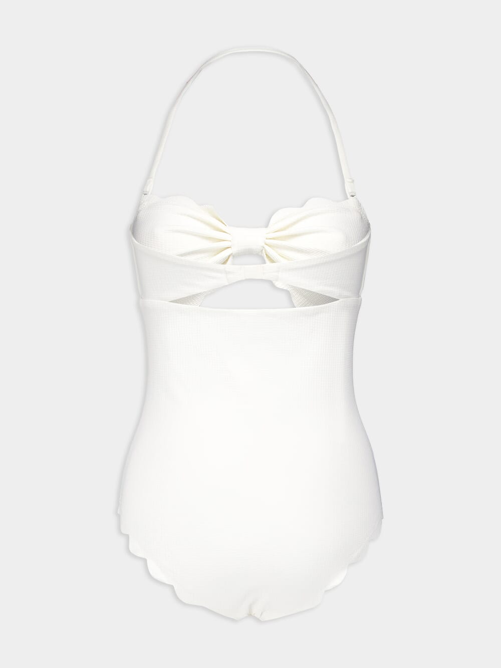 Palm Springs Maillot Tie, a vision of pure elegance in pristine white. This exquisite swimsuit features a timeless white hue that exudes sophistication and grace. The playful tie detailing adds a touch of whimsy, while the sleek silhouette flatters your figure. Crafted with meticulous care and attention to detail, it ensures a comfortable and stylish fit, allowing you to radiate confidence by the pool or on the beach.