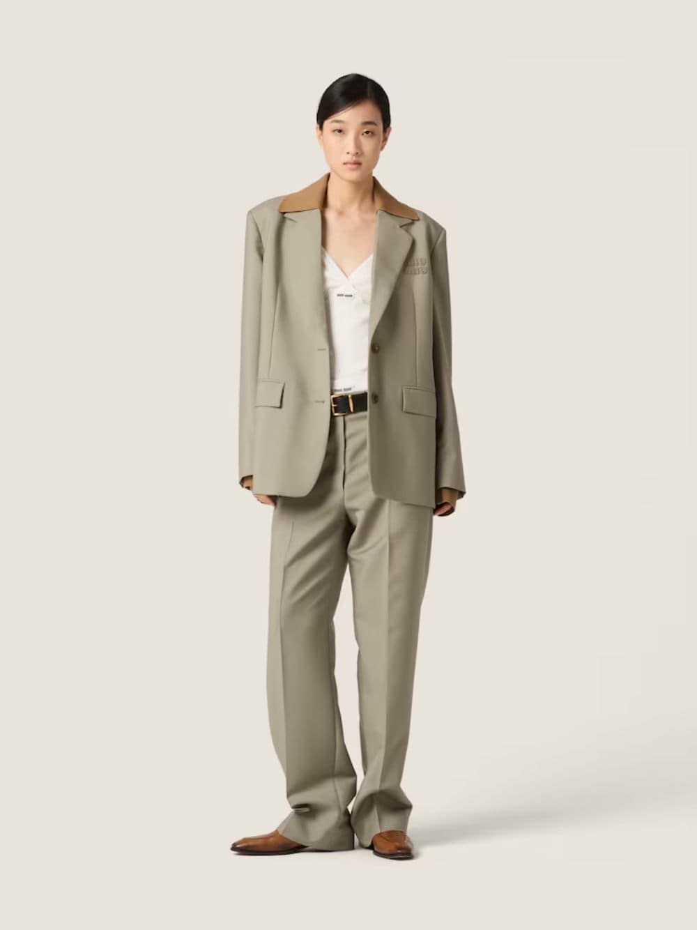 Lightweight and refined, these kid mohair pants by Miu Miu offer a contemporary interpretation of formal dressing. Cut in a straight fit, the design features front pleats, inseam and welt pockets, and a zip fly with hook closure. The unlined finish enhances their fluidity, while the discreet embroidered logo completes the look with subtle sophistication. Ideal for polished yet relaxed styling.
