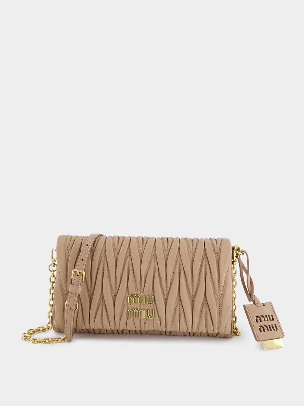 Matelassé Nappa Leather Shoulder Bag, featuring an exquisite matelassé motif, this bag exudes elegance and sophistication. The detachable and adjustable 110 cm leather and chain shoulder strap offers versatile styling options, while the removable leather mirror case adds a touch of convenience. The gold-tone/steel hardware beautifully complements the design, and the metal lettering logo on the front adds a signature touch. With a secure snap closure, your belongings are kept safe and accessible. Inside, the cotton satin lining features a zipper pocket for seamless organization.