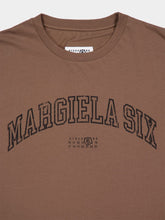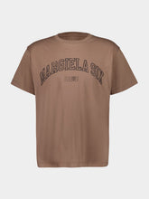 This light brown cotton jersey T-shirt features a bold varsity print with MM6’s numeric signature on the front. Its crewneck design and regular fit offer timeless versatility, while the white stitch line at the back reflects the Maison’s iconic detailing. Crafted from 100% cotton, this piece delivers understated luxury with a relaxed aesthetic.