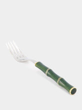 Green Bamboo Dessert Fork, meticulously crafted from premium 18/10 polished stainless steel. The handle's unique design, achieved through a precise hot melting process, seamlessly marries the strength of stainless steel with the natural beauty of bamboo.