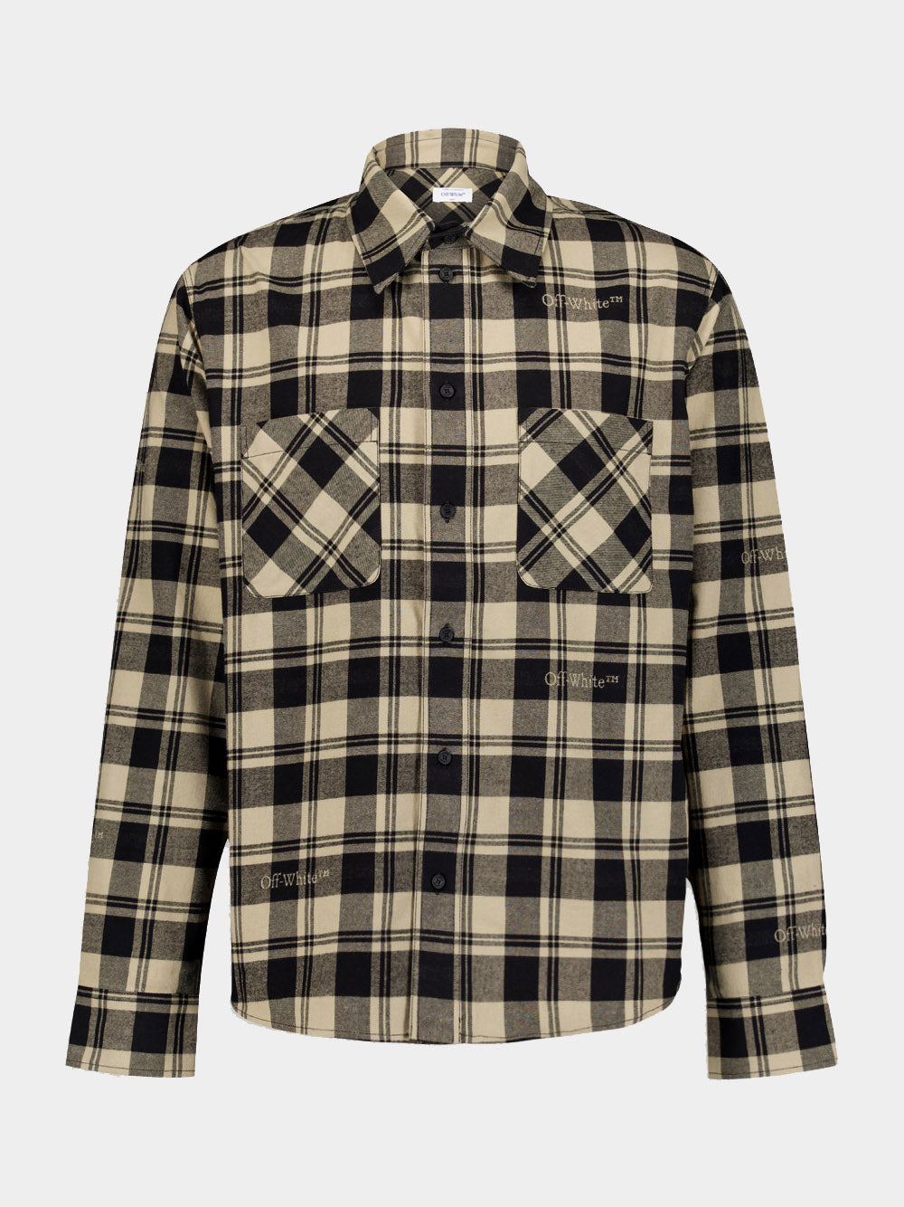 Check-Print Flannel Shirt, crafted in soft flannel, this shirt features a captivating check print with an all-over logo design. The classic collar and front button fastening add a touch of sophistication, while the long sleeves and buttoned cuffs ensure versatility. Complete with two chest patch pockets, this shirt seamlessly blends fashion and functionality.