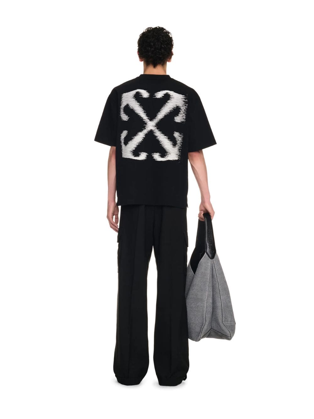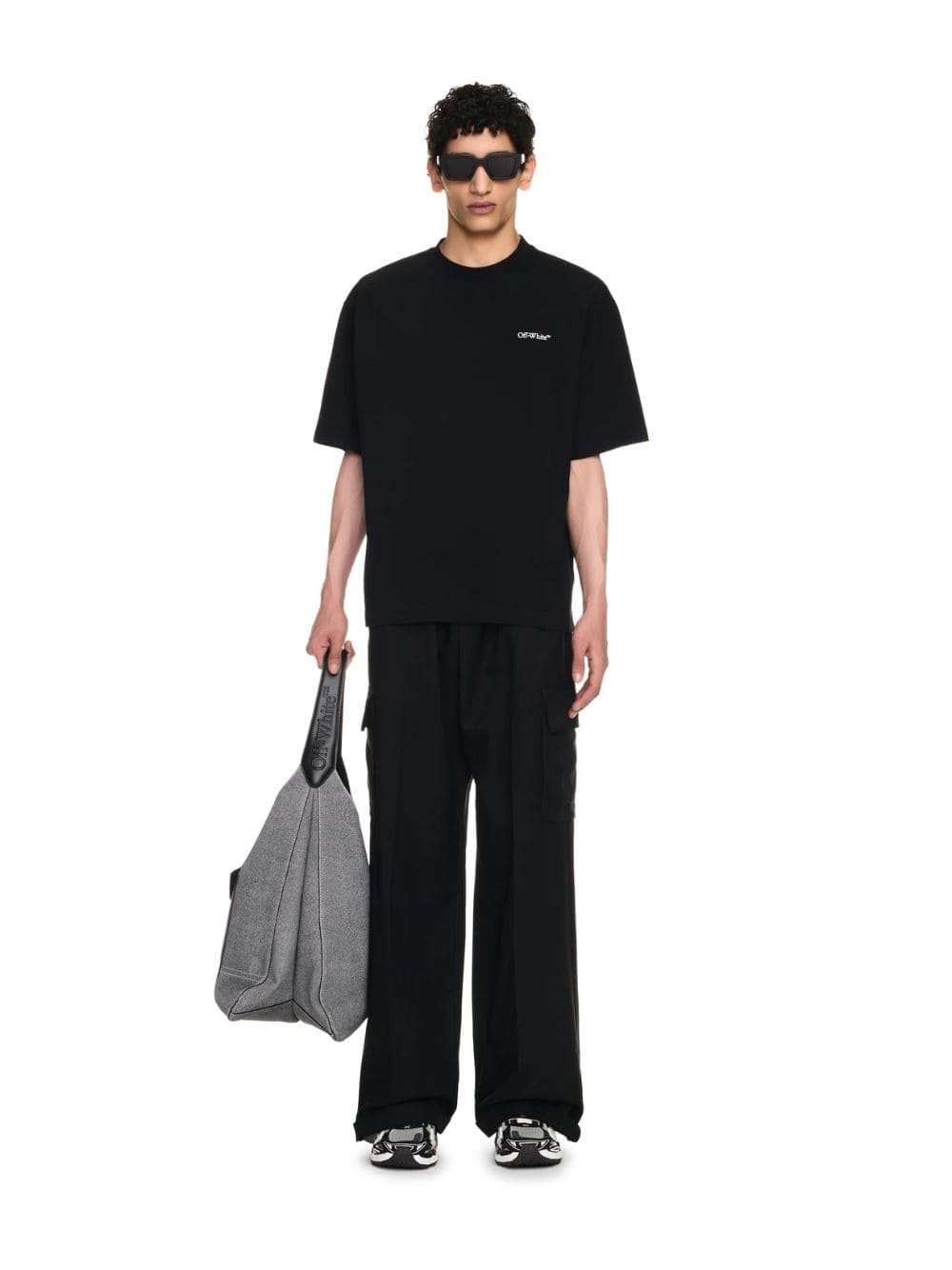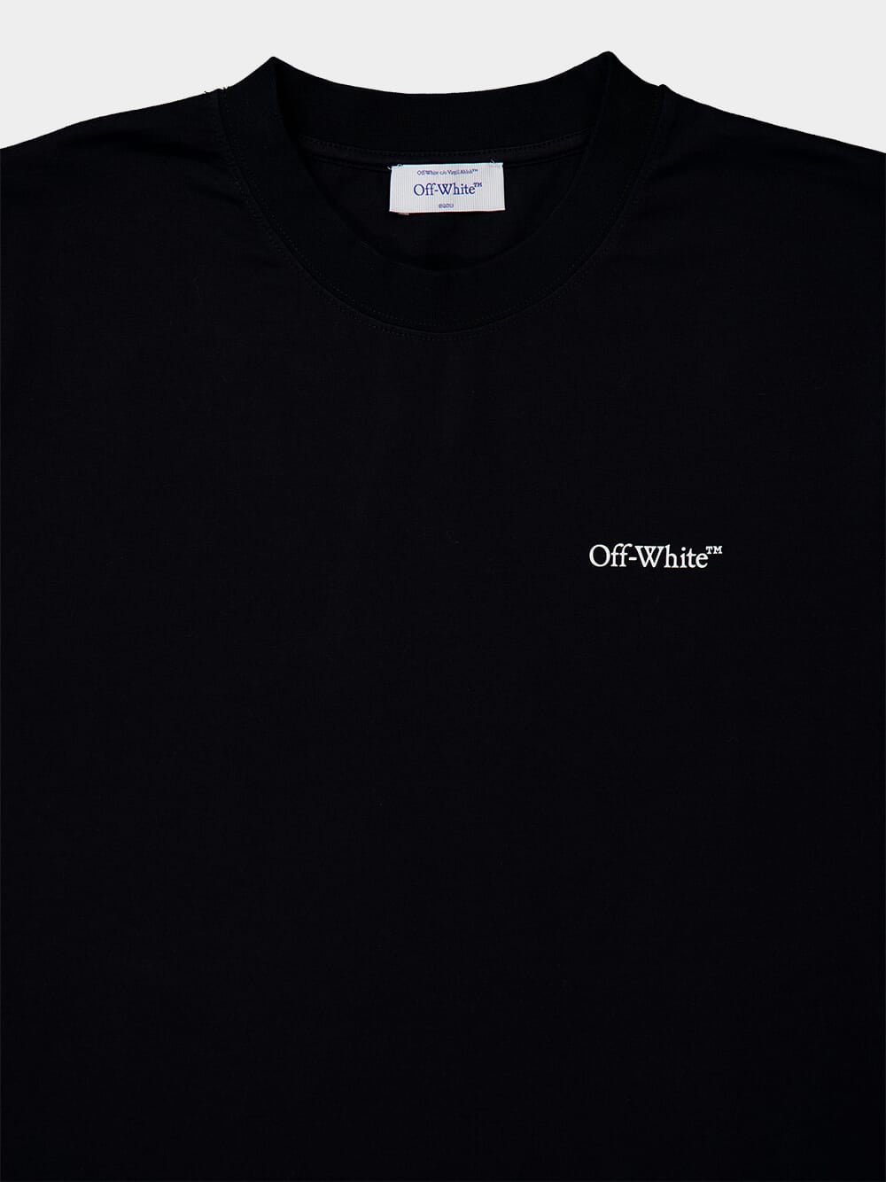This black skate-fit T-shirt features a small bookish logo on the front and a large windy arrow design on the reverse. Made from high-quality cotton, it provides a relaxed fit for comfort and style. Perfect for casual wear and skating activities, this T-shirt combines a modern aesthetic with practical wearability.