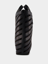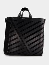 Diag Cut-Out Leather Tote Bag, featuring the signature Diag-stripe pattern that sets it apart. The two rolled top handles ensure both style and comfort for your everyday ventures. A logo print on the front and a front zip-fastening pocket add a touch of contemporary flair. With an open top leading to a spacious main compartment and an internal zip-fastening pocket, this tote effortlessly combines fashion and functionality.