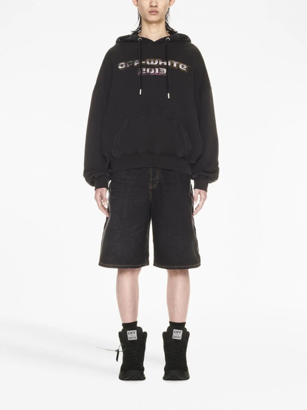 Digit Bacchus Cotton Hoodie, features a captivating logo print at the chest and a striking graphic print on the rear, embodying modern elegance. The drawstring hood, paired with a front pouch pocket, adds functionality to your fashion. Embrace a relaxed fit with drop shoulders and long sleeves, complemented by ribbed cuffs and hem for a snug feel. Complete your look with the sleek straight hem, making a lasting impression wherever you go.