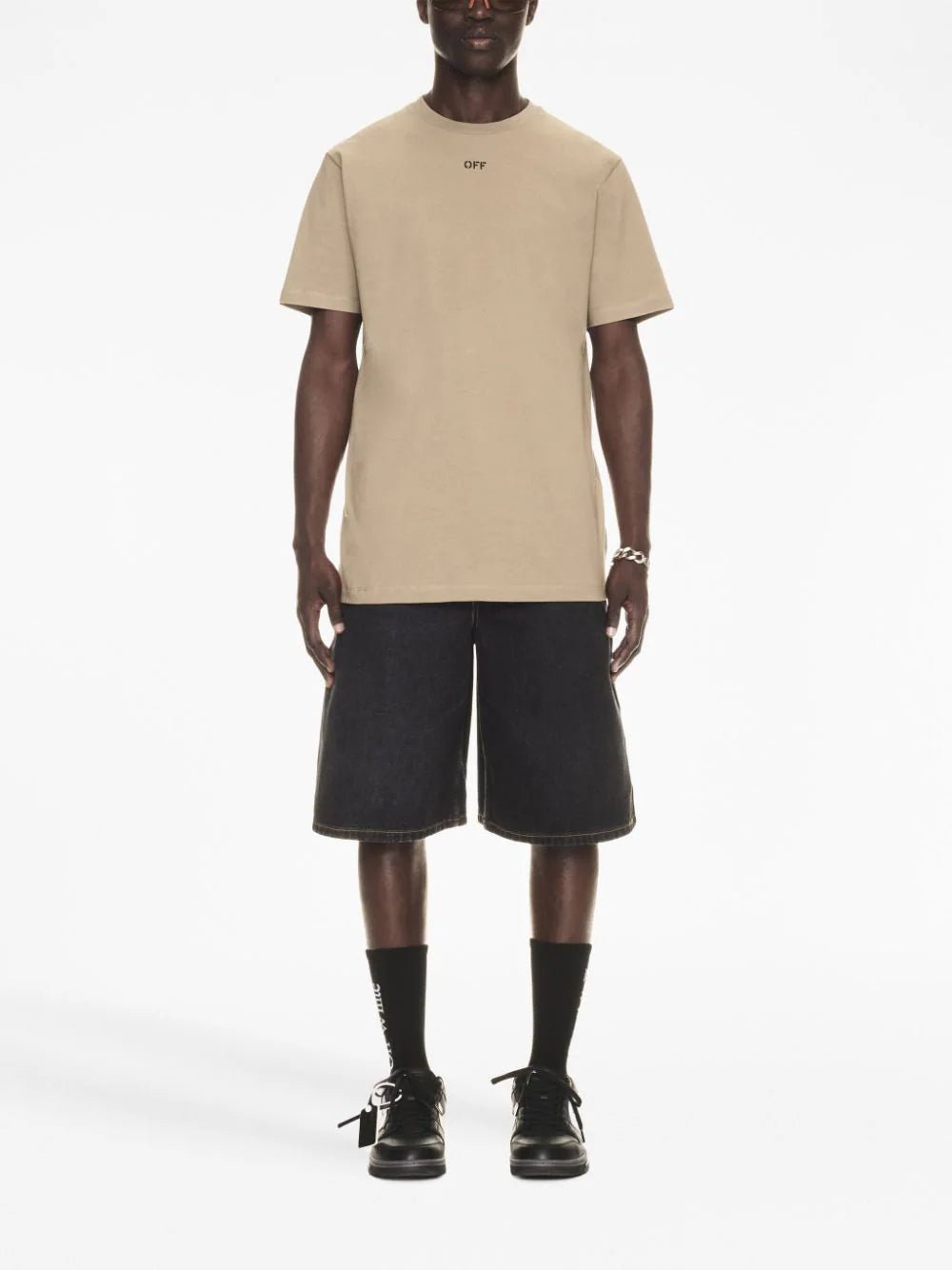 Off Stitch Slim T-Shirt: Elevate your style with this sleek short sleeves t-shirt. Highlighting a bold black OFF script at the front, this tee adds a trendy edge to your look. Designed with a comfortable crewneck collar and a flattering slim fit.