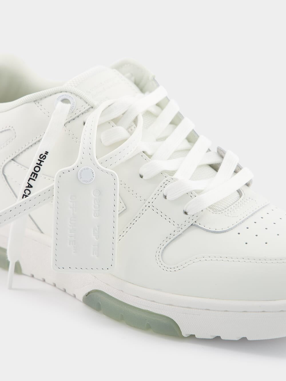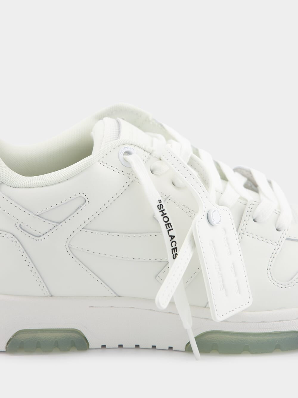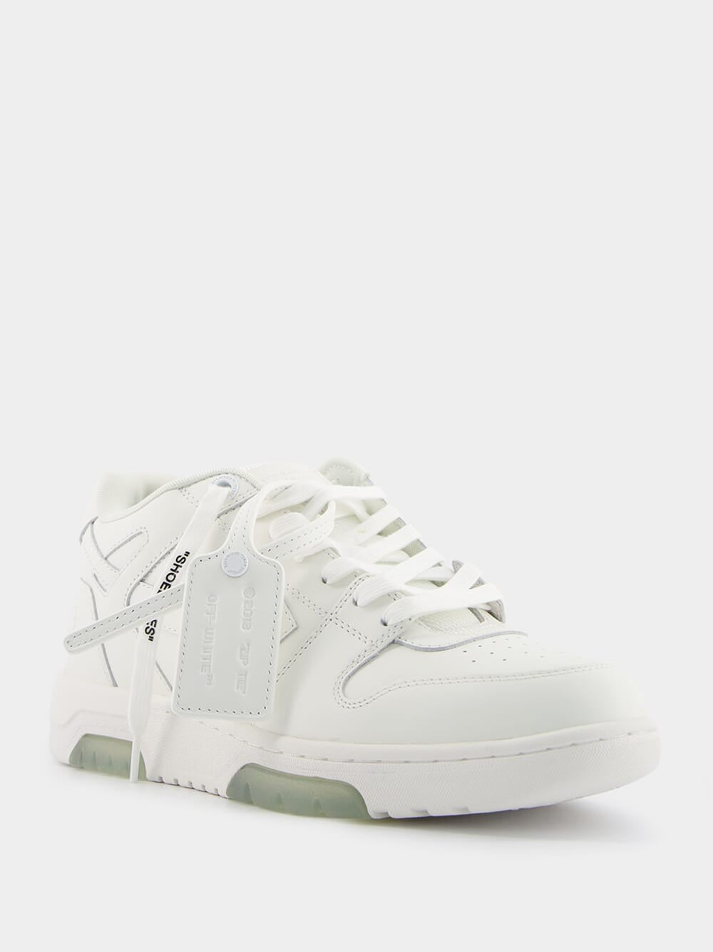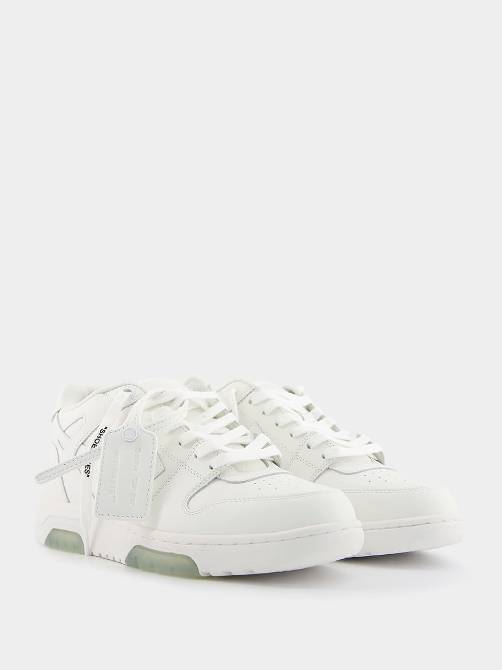 Out Of Office "OOO" Sneakers, featuring a distinctive leather tag that adds a touch of sophistication. These sneakers showcase the signature Arrows motif and intricate perforated detailing for a standout look. The logo patch at the tongue, round toe, and front lace-up fastening provide a perfect blend of style and comfort. Designed with a branded insole and heel counter, these sneakers boast a flat rubber sole for durability. Note, due to the dyeing process, avoid water contact.