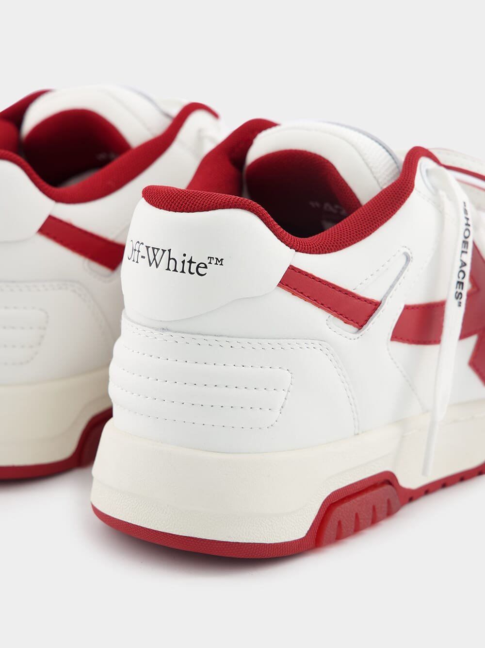 Out Of Office "OOO" Sneakers, featuring the iconic signature Arrows motif for a distinctive touch. These sneakers are designed with a unique luggage tag, adding a touch of individuality. The perforated toebox and round toe design offer both ventilation and comfort. The front lace-up fastening and logo patch at the tongue ensure a secure fit and undeniable style. Complete with a branded heel counter and ridged rubber sole, these sneakers combine fashion and functionality seamlessly.