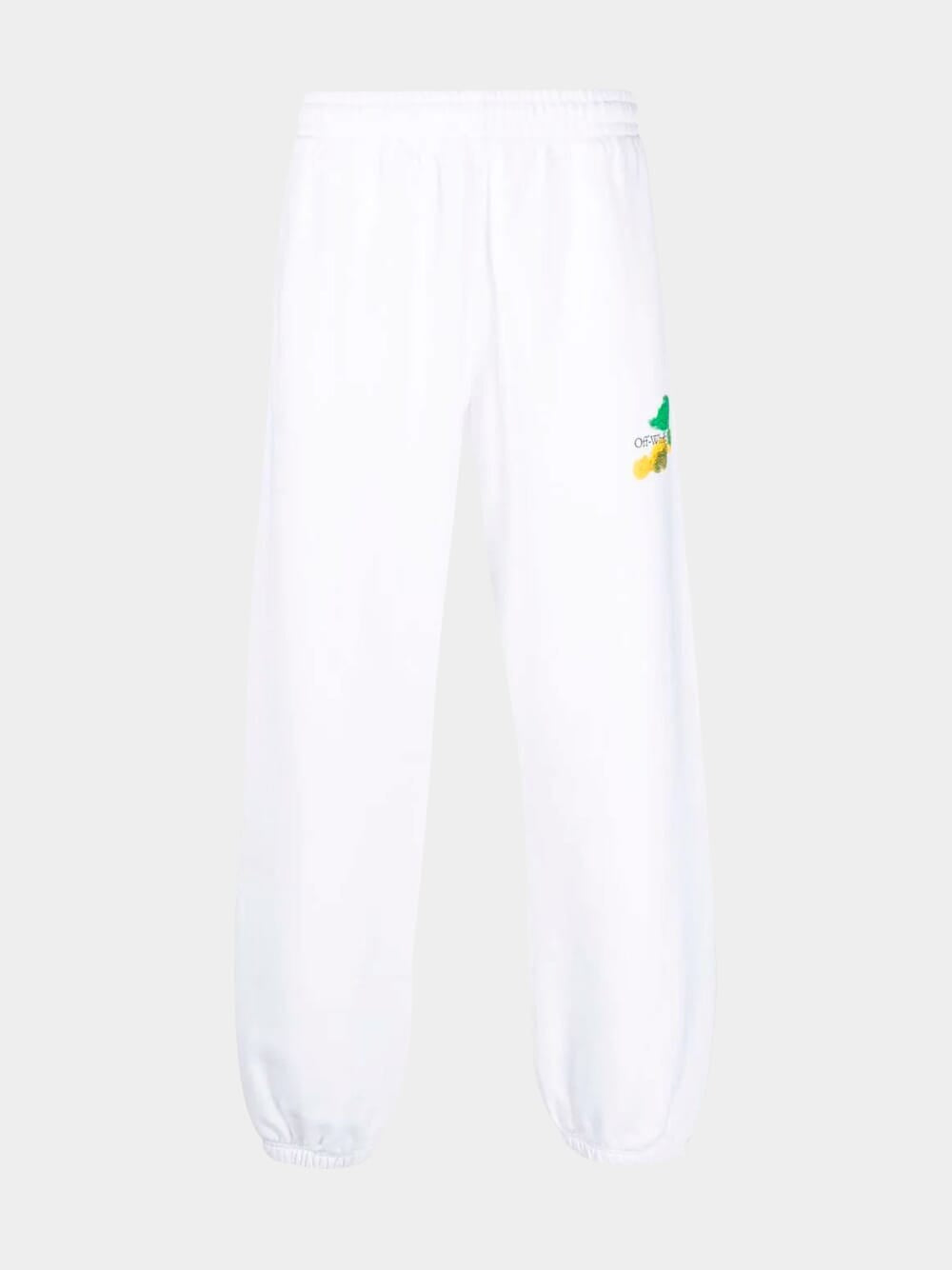Off-White Arrows track pants in white cotton with elasticated waistband and ankles.