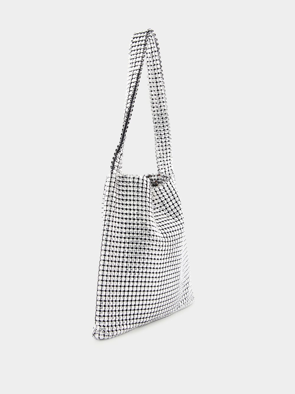 Pixel hobo bag crafted in stunning silver, this hobo bag is designed to catch the eye and elevate your ensemble. The pixelated pattern adds a modern edge, while the spacious interior offers ample room for your belongings. With its impeccable craftsmanship and sleek silver finish, this bag is a must-have for trendsetters.