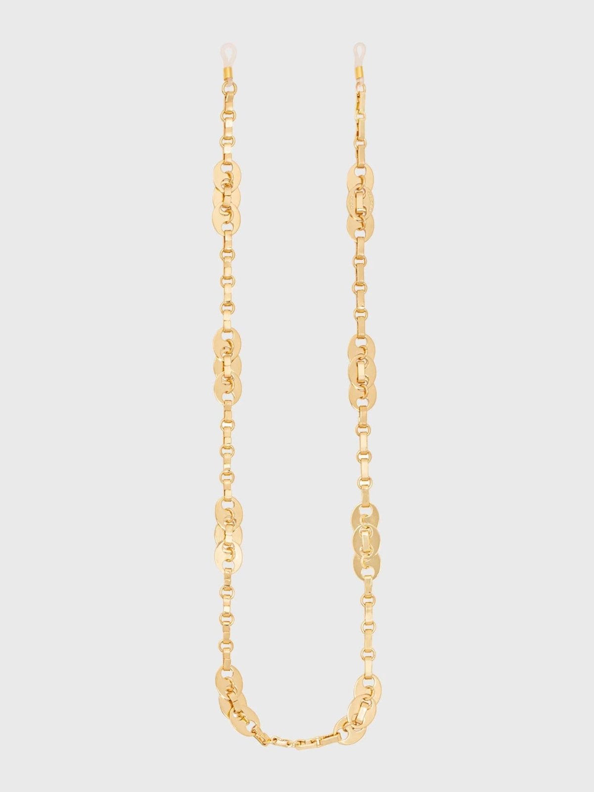 Sunglass chain necklace, a glamorous and versatile accessory in radiant gold. This necklace features a sleek and stylish design, crafted to effortlessly elevate your sunglass game. The gold finish exudes luxury and sophistication, making it a statement piece that complements any outfit.
