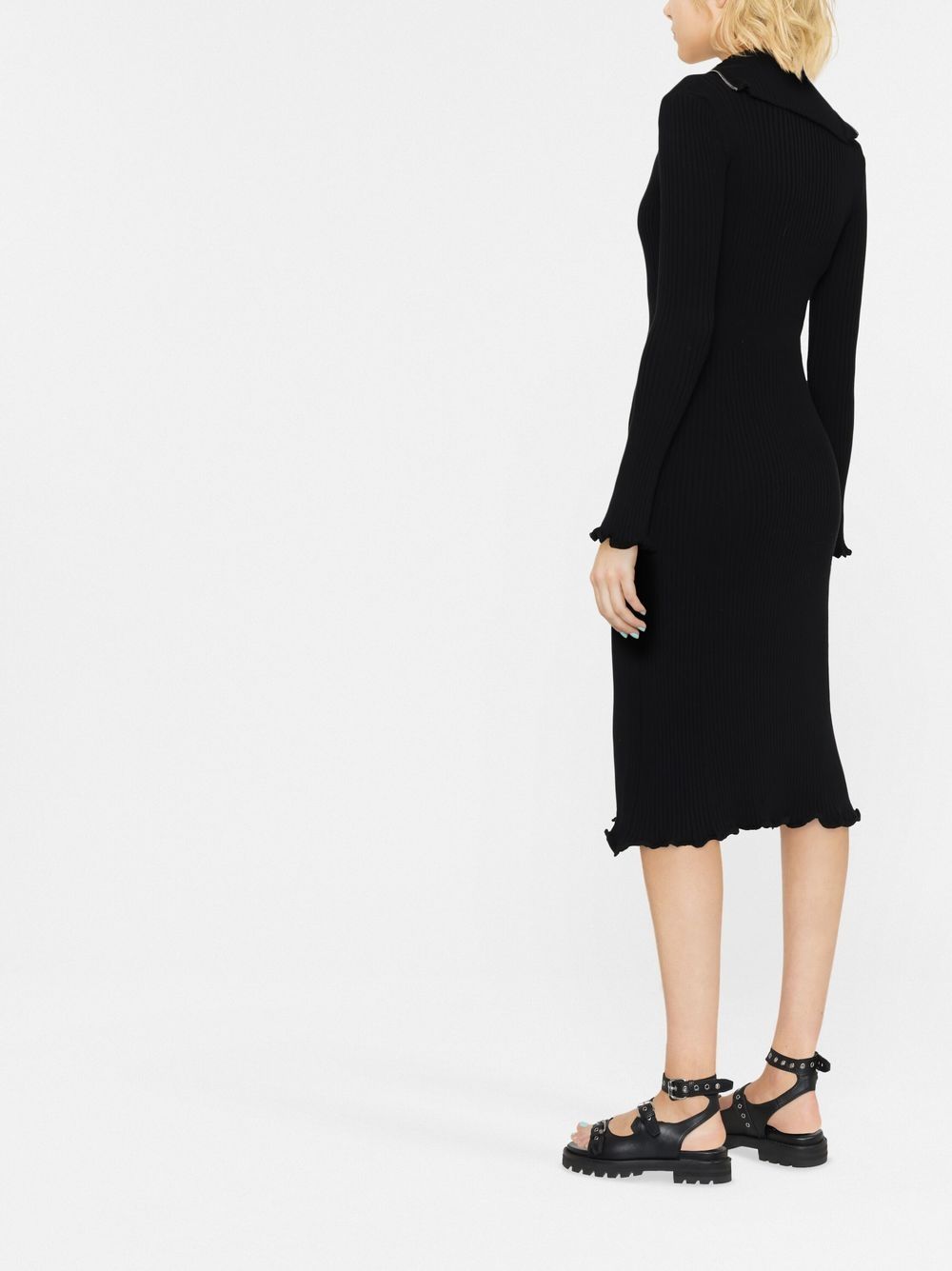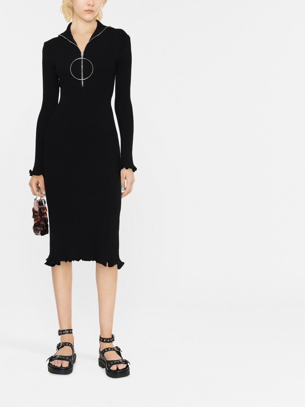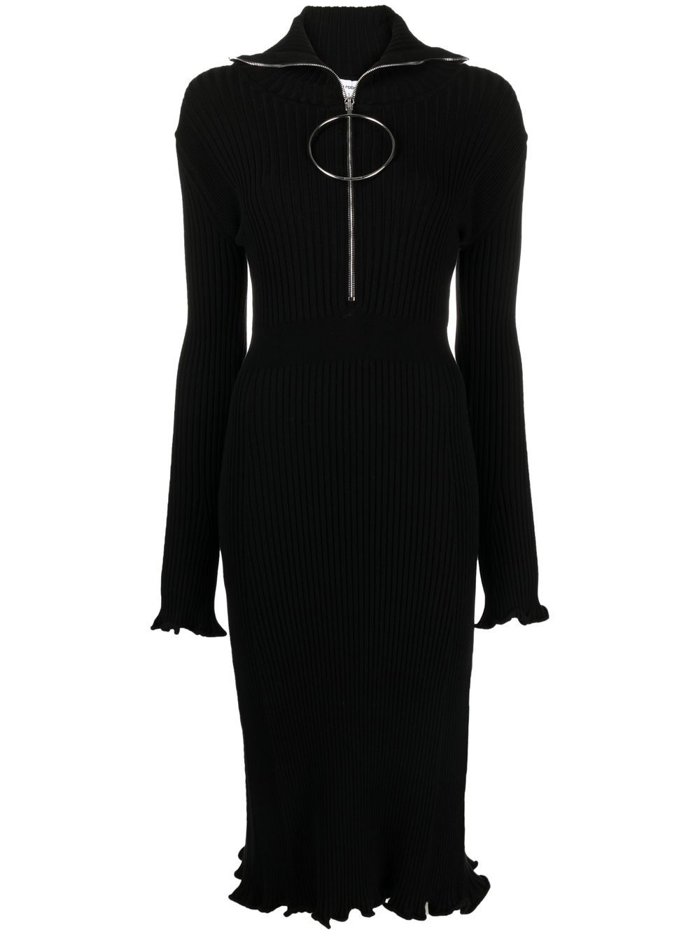 Paco Rabanne black wool long sleeve mesh dress with a fitted cut and zip closure at the neckline.