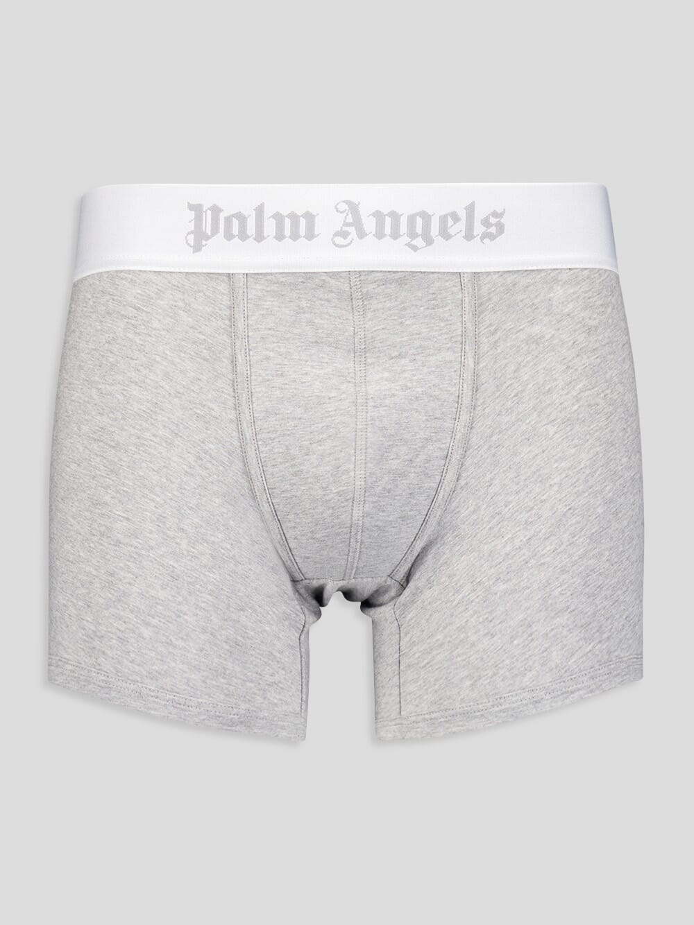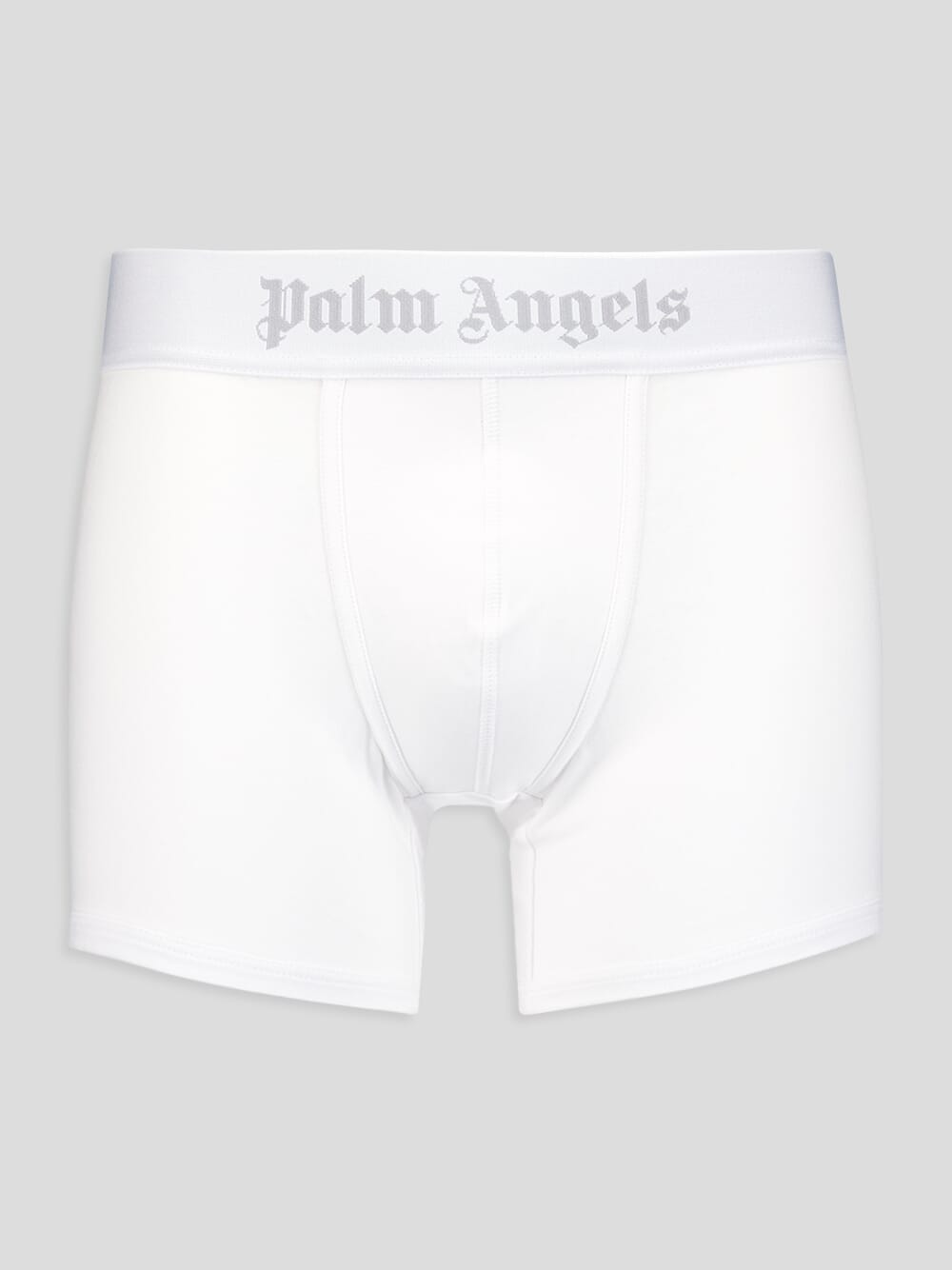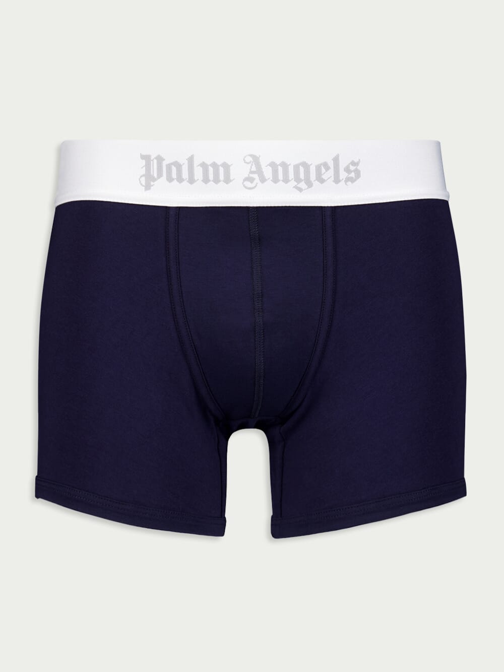 Boxer Tripack, a set of three underwear boxer shorts designed for men. Crafted from premium cotton jersey, these boxers offer a soft and cozy feel, making them perfect for everyday wear. The regular fit ensures a comfortable and flattering silhouette. Available in three classic colors, each pair features a white elastic waistband adorned with the iconic gray "Palm Angels" logo, adding a touch of style to your essentials.