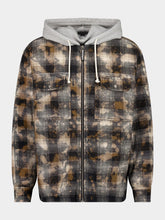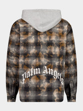 This Checked Brown Hooded Jacket by Palm Angels combines contemporary style with comfort. Featuring a zip-up front, this jacket showcases a distressed checkered pattern in earthy tones of brown, beige, and black. Designed with dual chest flap pockets, an attached grey drawstring hood, and a relaxed fit, it’s perfect for layering during cooler seasons. A versatile addition to any modern wardrobe.