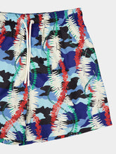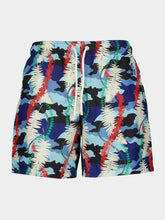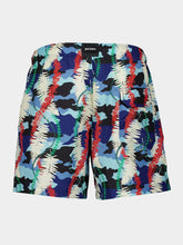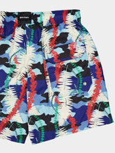 These men's printed swim shorts feature an exuberant mix of leaves and fragrant Hawaiian flowers for a fresh seasonal twist. Designed with an elastic waist and white drawstring, they offer comfort and style. Complete with a back pocket and the Palm Angels logo on a black label at the back.