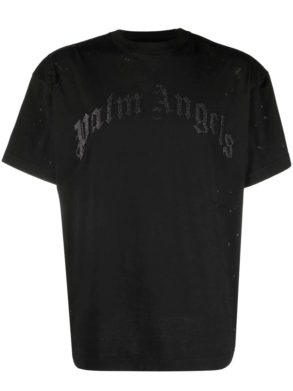 Palm Angels logo print black t-shirt with print on the front and crew neck collar.