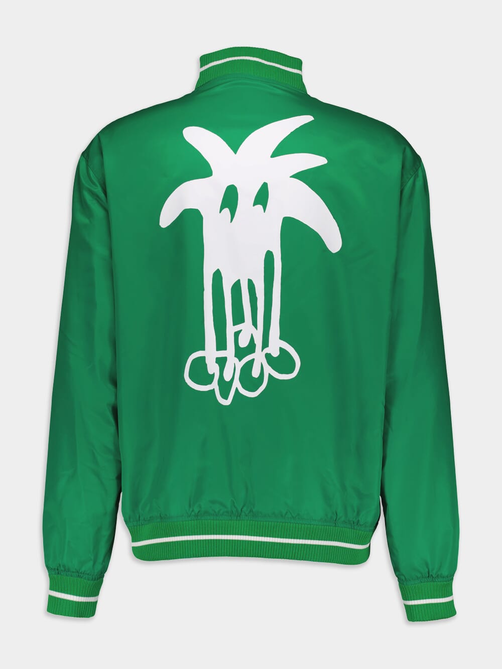 Graphic-Print Bomber Jacket, features a captivating graphic print to the rear and a logo print at the chest, showcasing the brand's iconic design. Embrace the chic striped border that adds a touch of modernity to your look. Designed with a classic round neck and front press-stud fastening, it offers both fashion-forward aesthetics and functionality. The long sleeves, along with slip pockets on the sides, provide added comfort and convenience. Complete with a straight hem, this bomber jacket effortlessly complements any outfit.