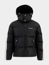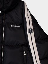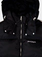 Introducing the Palm Angels Hooded Nylon Down Track Jacket—a fusion of style and functionality. This jacket boasts a detachable hood for adaptable wear. With a convenient front zip closure and elastic cuffs, it offers ease and comfort. Signature logo details adorn the jacket, adding an urban edge. Complete with two side zip pockets, it's a perfect blend of fashion-forward design and practicality for your everyday adventures.