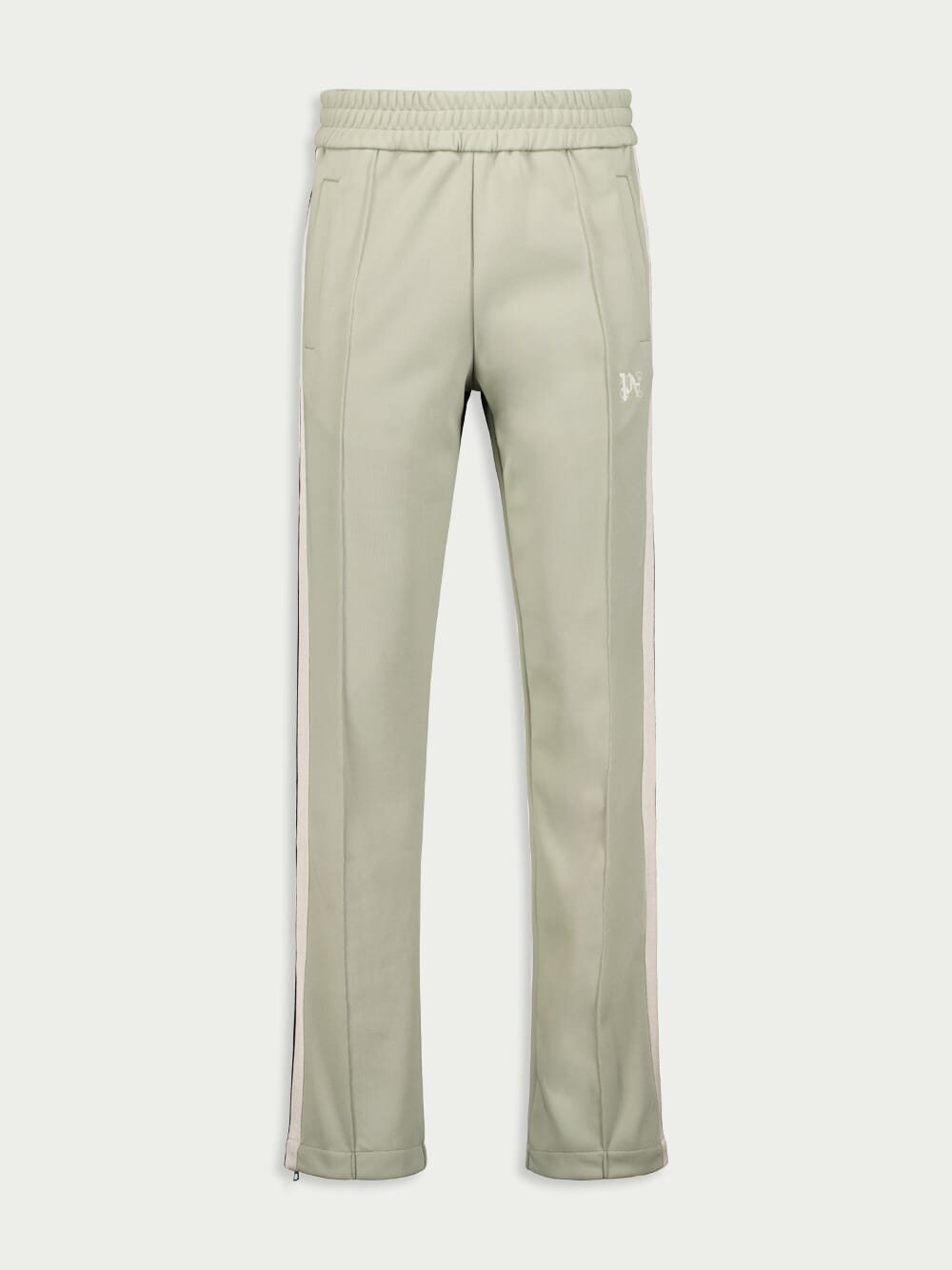 Monogram-Embroidered Striped Track Pants, feature an embroidered monogram, showcasing the iconic design. Embrace the fashionable side stripe detailing and pressed crease, adding a touch of modernity to your look. The elasticated waistband ensures a comfortable and customizable fit. With a straight leg, two front welt pockets, and short side slits, these track pants offer both functionality and a chic look.