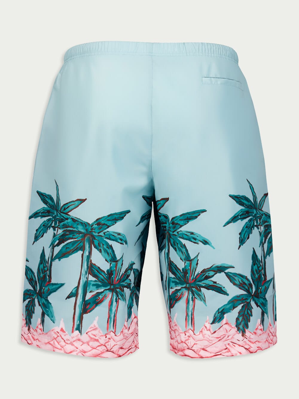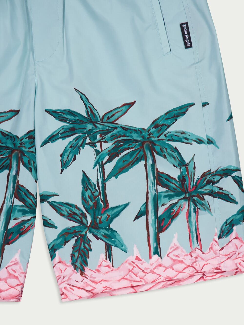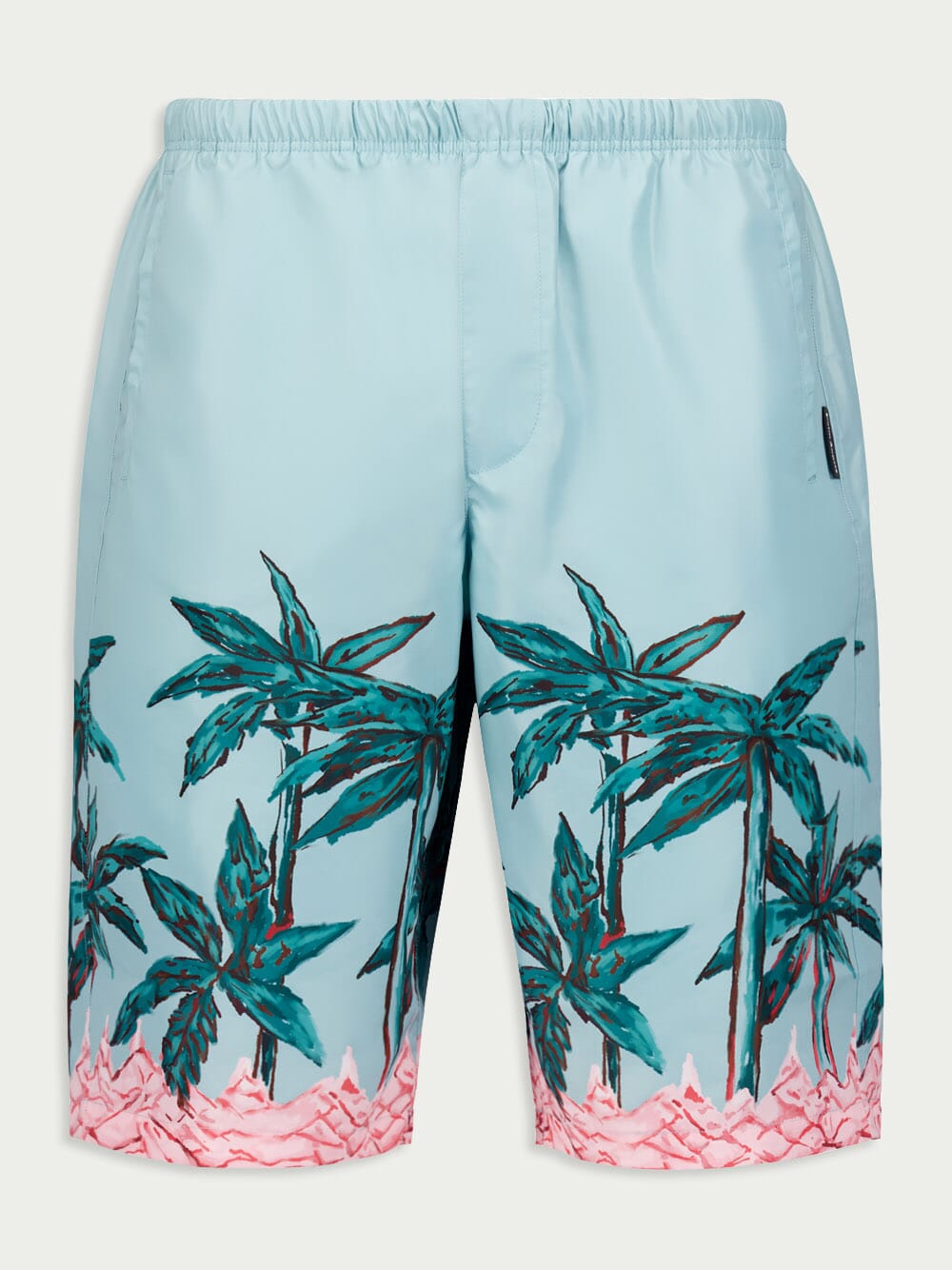 Palms Row-Print Swim Shorts, feature a captivating palm tree print, exuding tropical vibes. Embrace the mini logo tag that adds a touch of brand identity. Designed with a straight leg and elasticated waistband, these knee-length swim shorts with two side inset pockets and a straight hem, ensure a secure and comfortable fit.