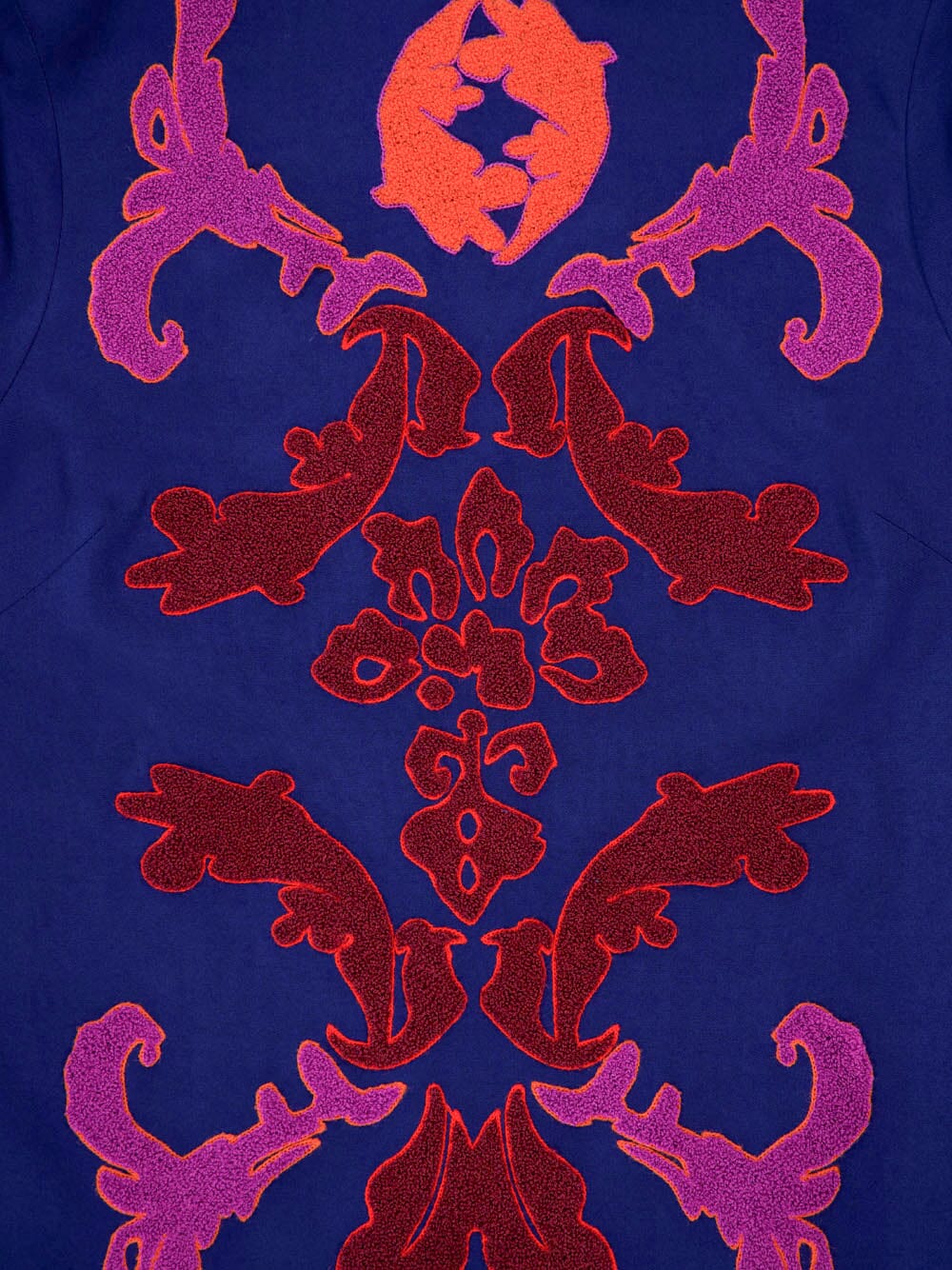Bellona Turtle Neck Embroidered Dress, featuring an exquisite embroidered motif that exudes elegance. This dress boasts feather detailing at the cuffs, adding a touch of contemporary flair to its design. The timeless turtle neck and below-knee length make it perfect for various occasions. With long sleeves, it's ideal for transitional seasons.