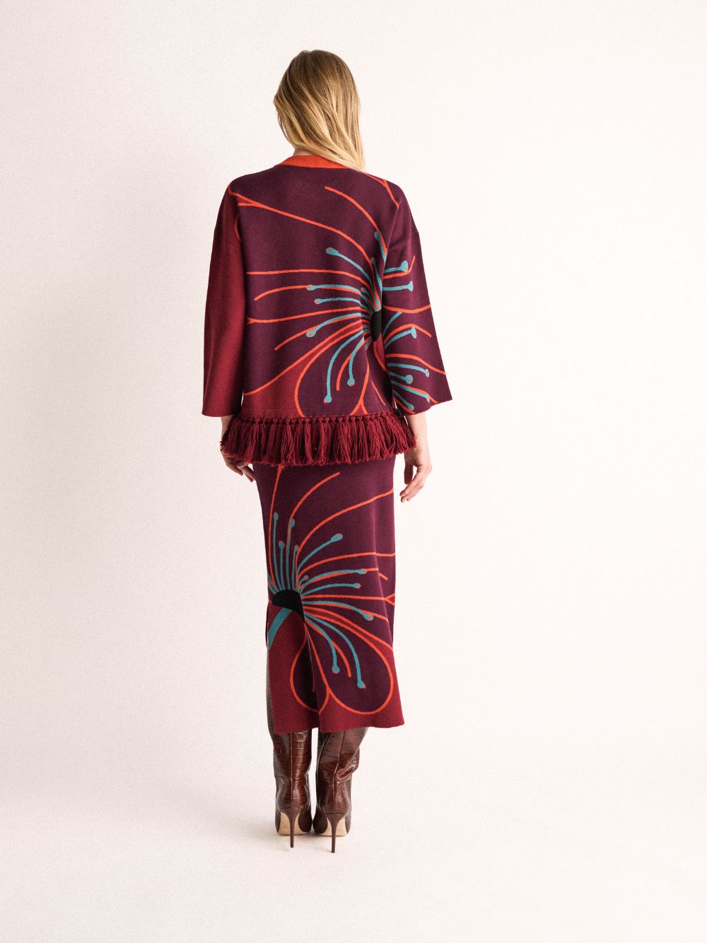 The Spar Jacquard pencil skirt features a striking floral pattern that adds a touch of elegance to any outfit. The rich burnt henna base is beautifully contrasted with bold flower motifs creating a visually stunning effect. Crafted from high-quality jacquard fabric, this skirt offers a comfortable and flattering fit. Its pencil silhouette and below-knee length make it perfect for both formal and semi-formal occasions.