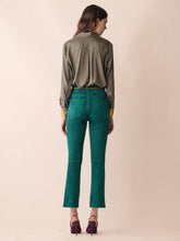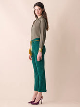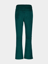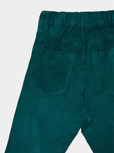 These teal suede trousers with a contemporary flared silhouette capture the essence of modern luxury. The soft texture and rich color offer a sophisticated aesthetic, while the flared cut adds a touch of elegance, perfect for the woman who appreciates fine details and timeless design.