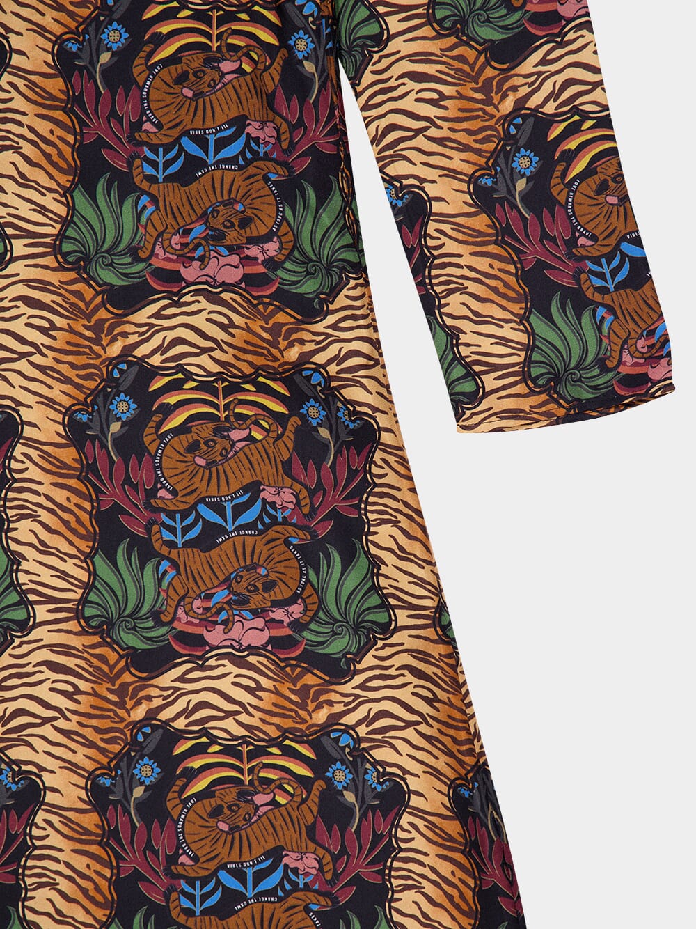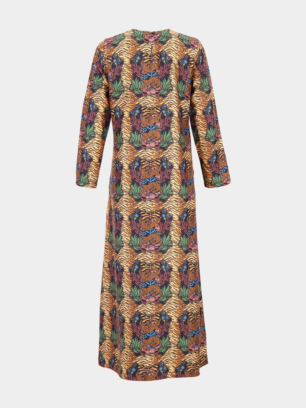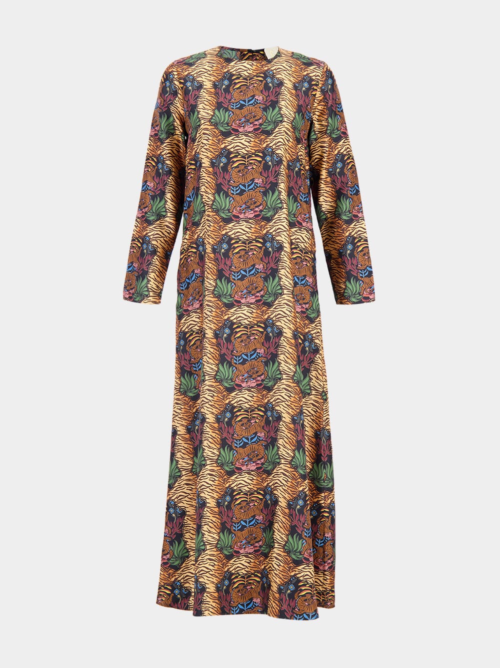 The Gray Dreamframe Print Printed Silk Twill A-Line Maxi Dress combines artistic flair with graceful sophistication. Crafted from 100% silk twill, this long-sleeved dress features a striking Dreamframe print that adds depth and visual interest to the fluid A-line silhouette. The luxurious fabric drapes elegantly, creating a timeless look perfect for both daytime events and evening occasions. Made in Portugal.