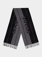 This sleek wool scarf features a sophisticated design with sporty-inspired elements. Crafted from high-quality wool, it showcases contrasting slate gray and black hues, creating a versatile accessory for any wardrobe. The scarf is adorned with a jacquard reinterpretation of the Savoy logo, adding a touch of elegance. Finished with fringe on two sides, this scarf is perfect for adding warmth and style to your look.