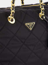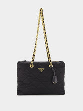 A re-edition of an iconic style from 1995, this shoulder bag embodies Prada codes in a casual, versatile silhouette that bridges past and present. Made of Re-Nylon, an innovative regenerated nylon yarn, it features iconic stitching in a geometric pattern. The leather and metal chain handles add vintage charm, along with the enameled metal triangle logo. Lightly padded and stitched, it includes a zipper closure, metal hardware, and a logo-print Re-Nylon lining with a zipper pocket. For sustainable care, avoid frequent washing, air out after use, and opt for ecological dry cleaning.