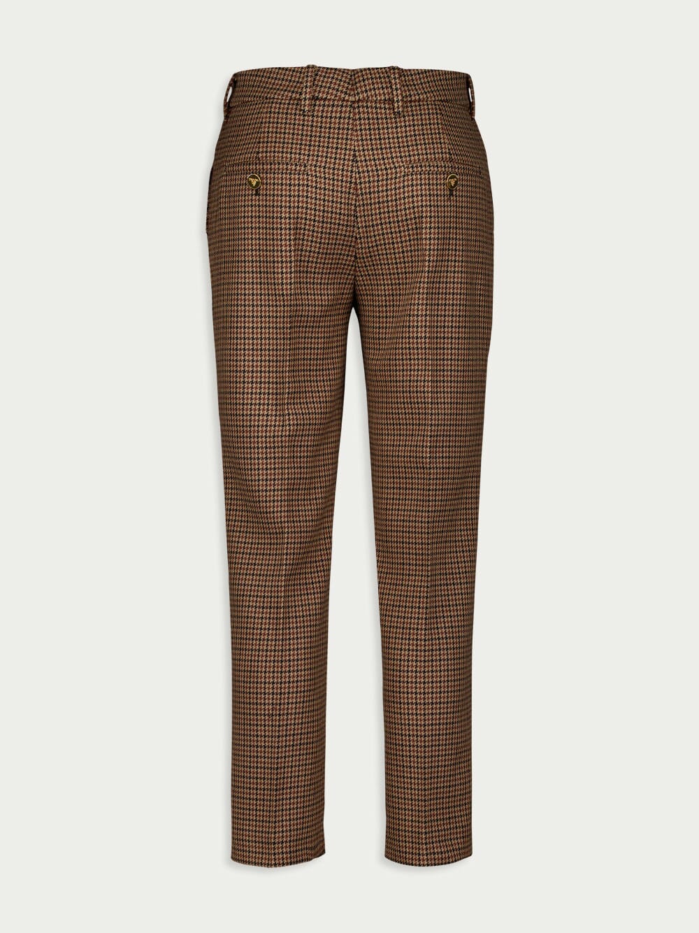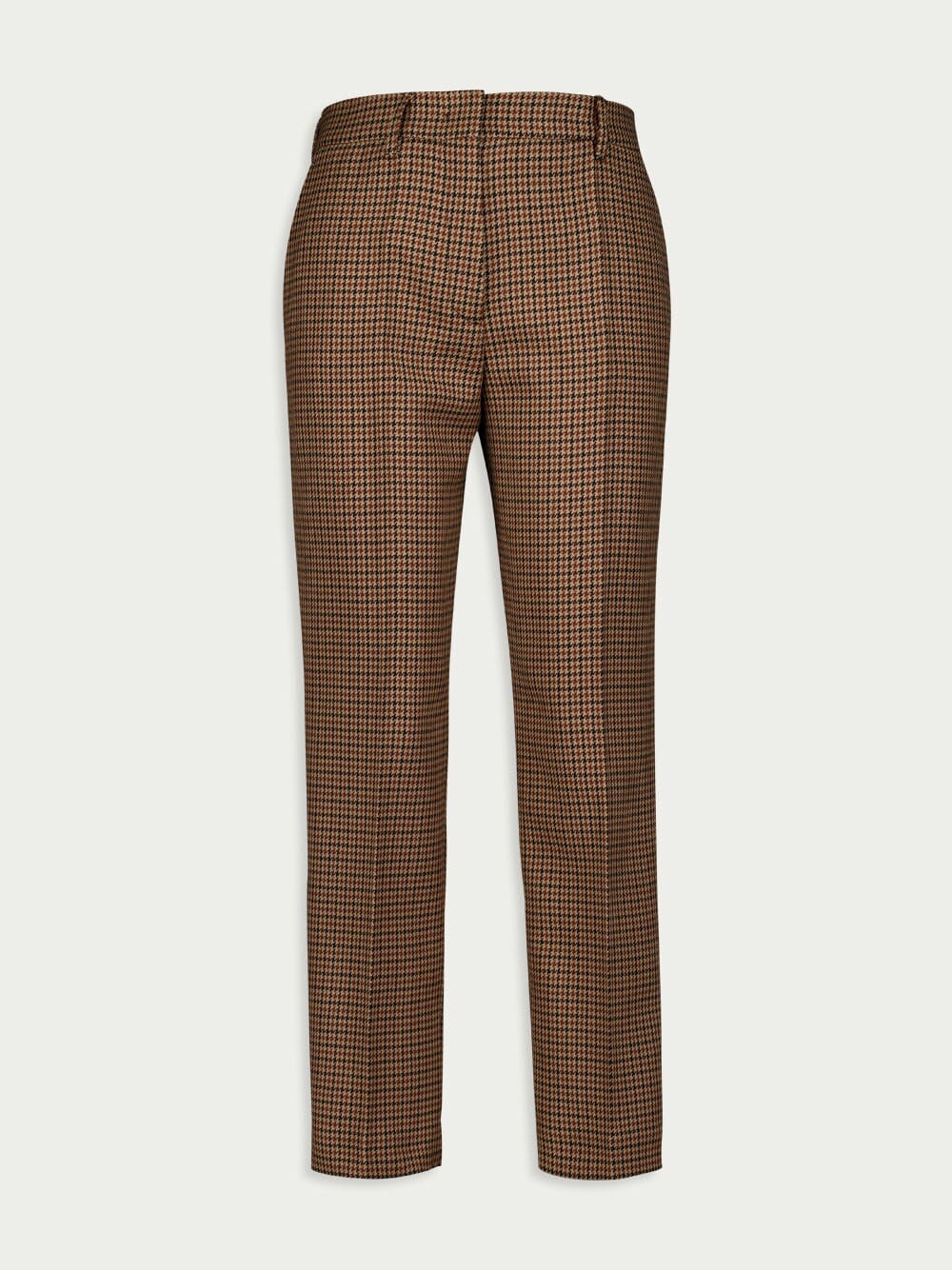 Check Wool Trousers, meticulously crafted with a mid-rise silhouette for a classic fit. These trousers feature convenient belt loops and a concealed front fastening that adds a touch of modern refinement. The side pouch pockets provide both style and functionality, while the pressed crease detail enhances the polished look. With a straight leg design, these trousers effortlessly combine comfort and elegance.