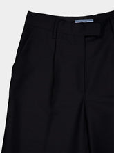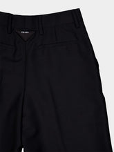 Prada presents these impeccable wide-leg tailored trousers, a symphony of sustainable luxury. The mohair-wool blend material features the signature triangle logo, conveying exclusivity. Details include a high waist, belt loops, and a concealed fastening, paired with sharp creases and recycled cupro lining.