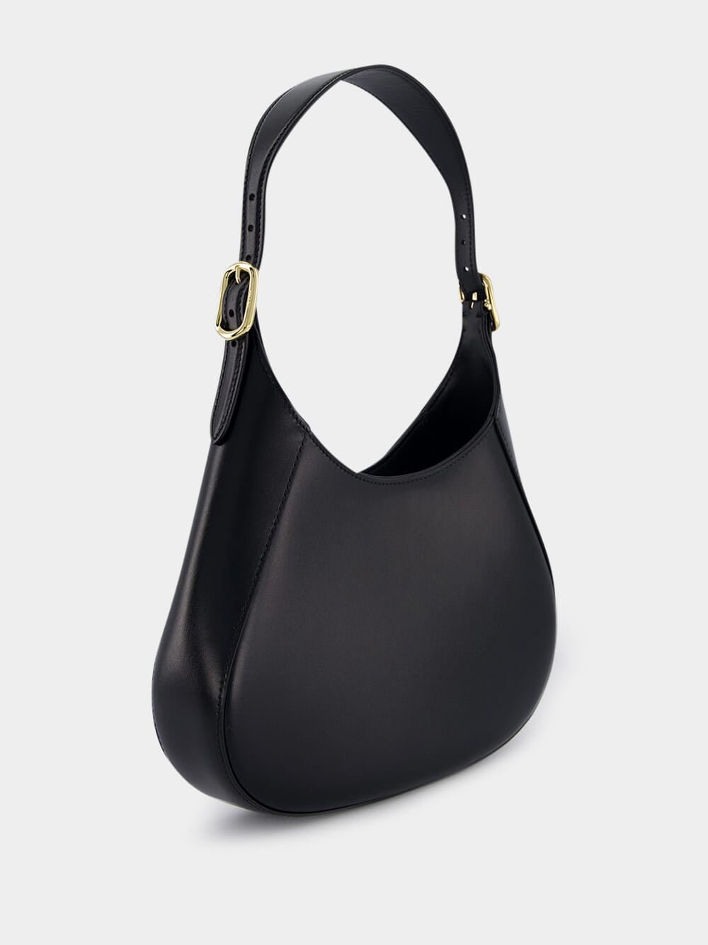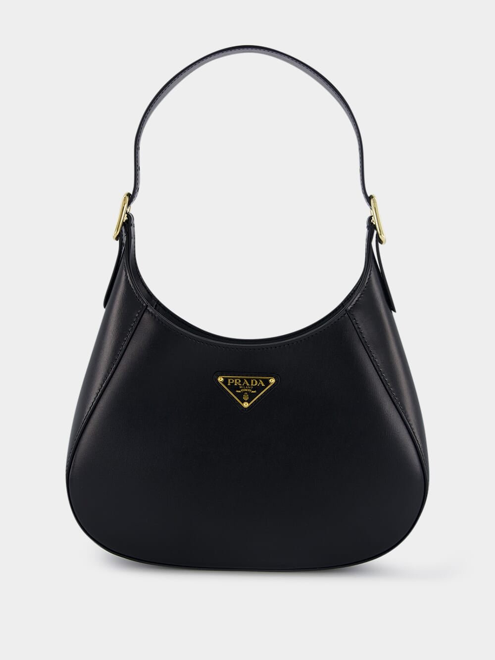 Leather Shoulder Bag, crafted with meticulous attention to detail, this bag features an adjustable leather handle, allowing you to find the perfect fit for comfortable carrying. The metal hardware adds a touch of sophistication and durability to the bag. The enameled metal triangle logo on the front showcases the iconic brand with a modern twist. The magnetic clasp provides easy access to your belongings while keeping them secure. Inside, you'll find a luxurious nappa lining, accompanied by a convenient patch pocket, ensuring organized storage for your essentials.