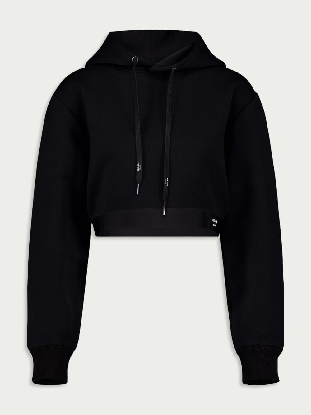Logo-Print Cropped Hoodie, features a logo print at the hem, showcasing the iconic brand's design. With a logo-print drawstring and drawstring hood, it offers a modern and chic look. The long sleeves and ribbed cuffs add a touch of coziness and versatility. Embrace a flattering cropped fit, perfect for a fashion-forward statement.