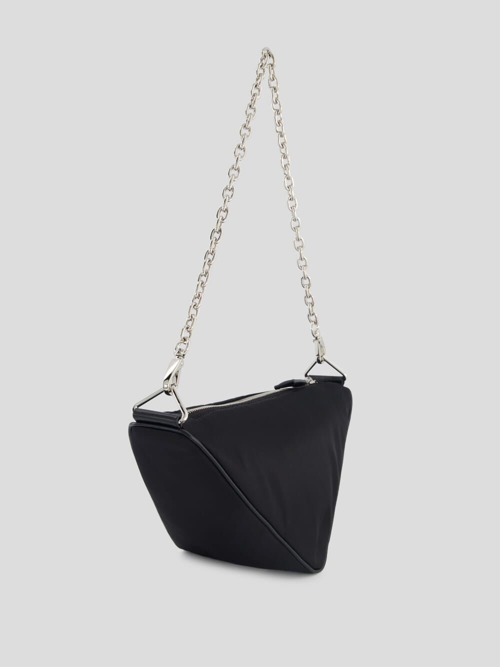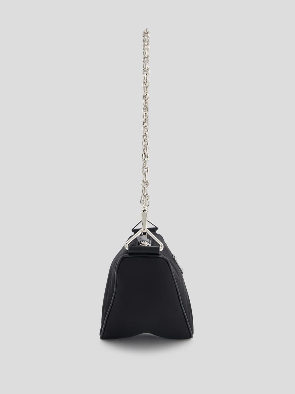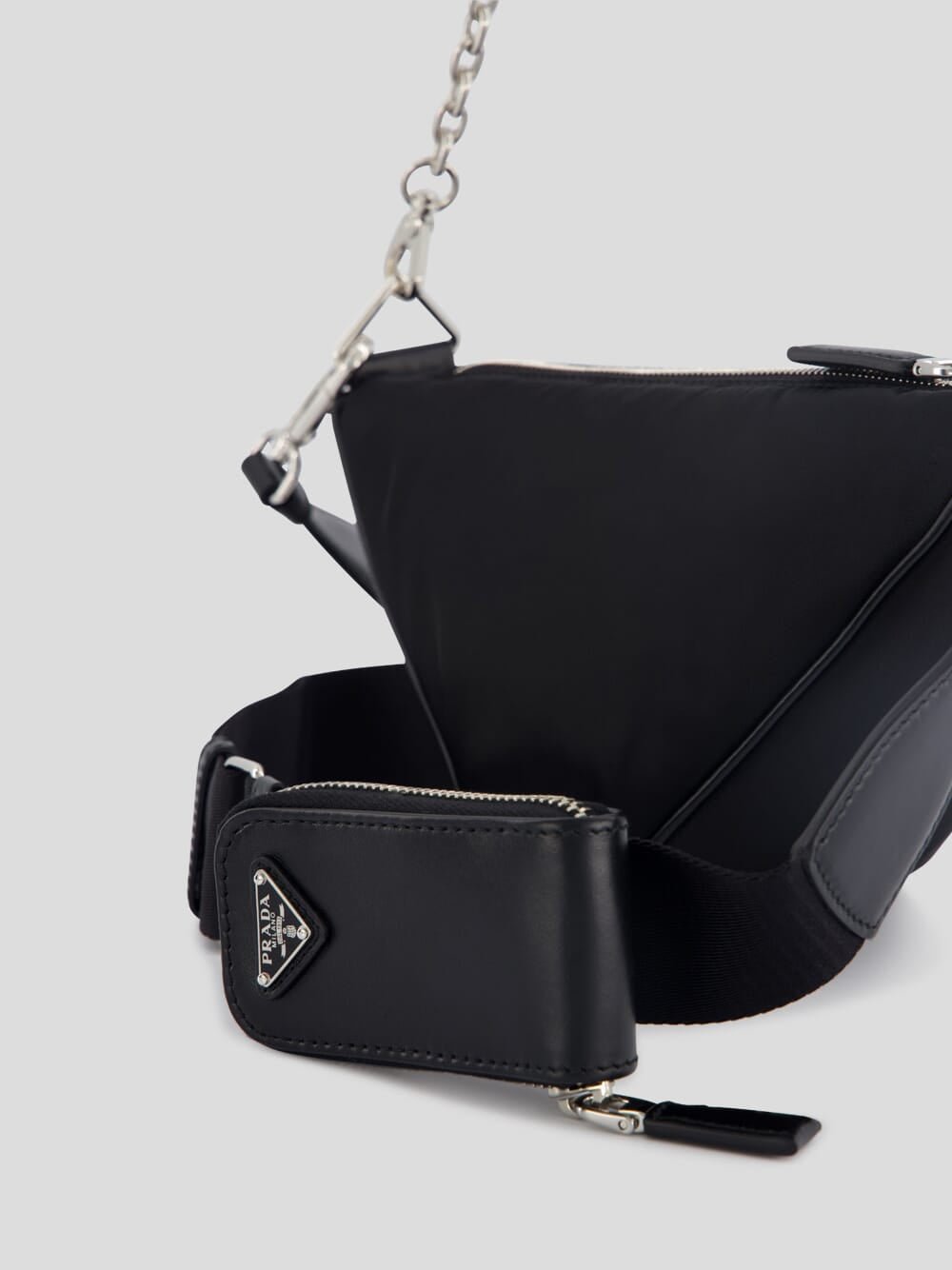 Prada Triangle Shoulder Bag, a stylish and eco-conscious choice crafted from recycled nylon. This shoulder bag showcases silver-tone hardware, adding a touch of sophistication to your ensemble. Its zip closure ensures secure storage, while the removable chain shoulder strap and adjustable logoed fabric shoulder strap offer versatile carrying options. The bag's interior is lined in black logoed fabric, providing a luxurious feel. Adorning the front is the iconic triangle logo in enamelled metal, showcasing the brand's impeccable craftsmanship. Complete with a removable compartment, this bag is a perfect blend of fashion and functionality.