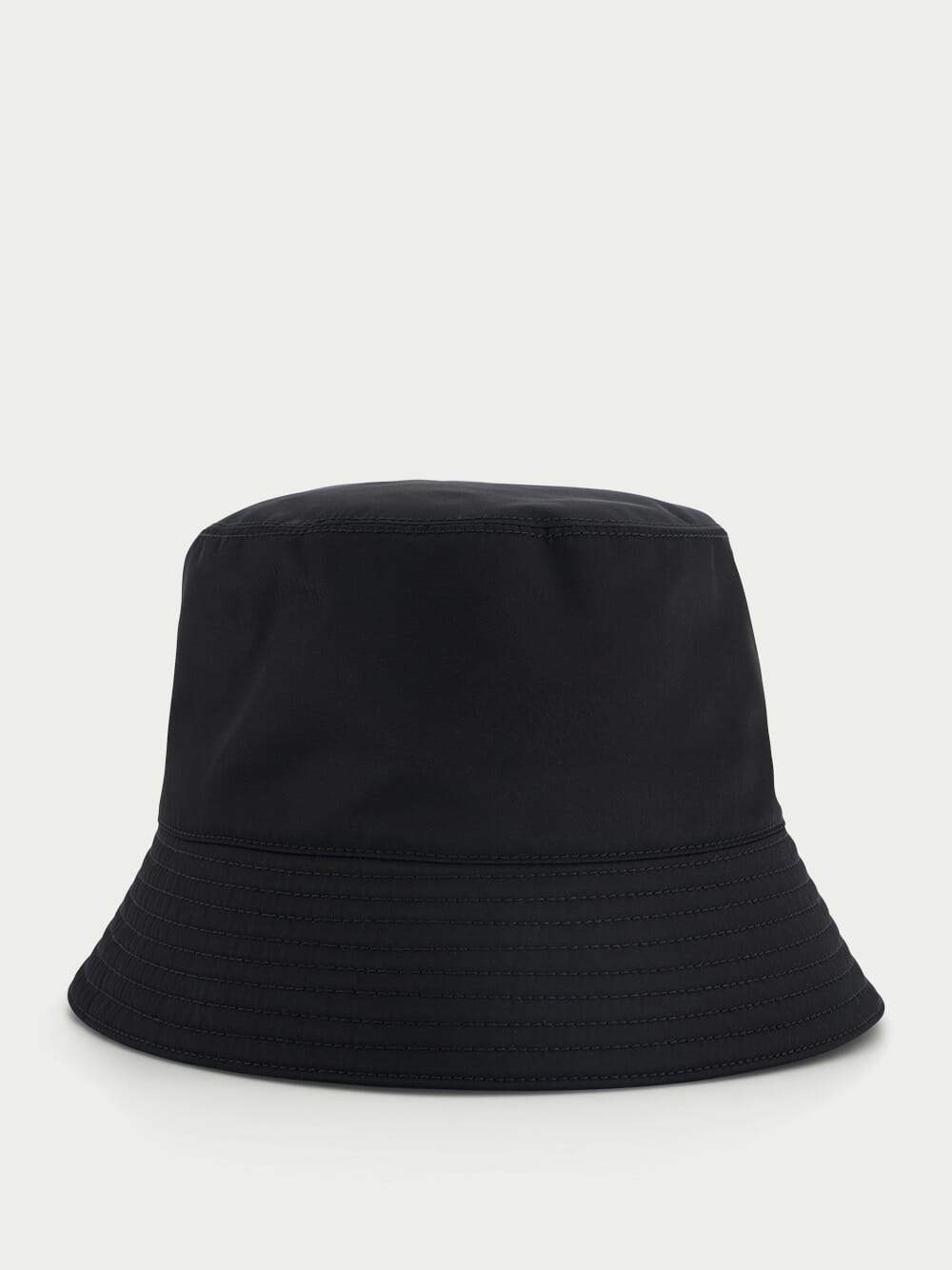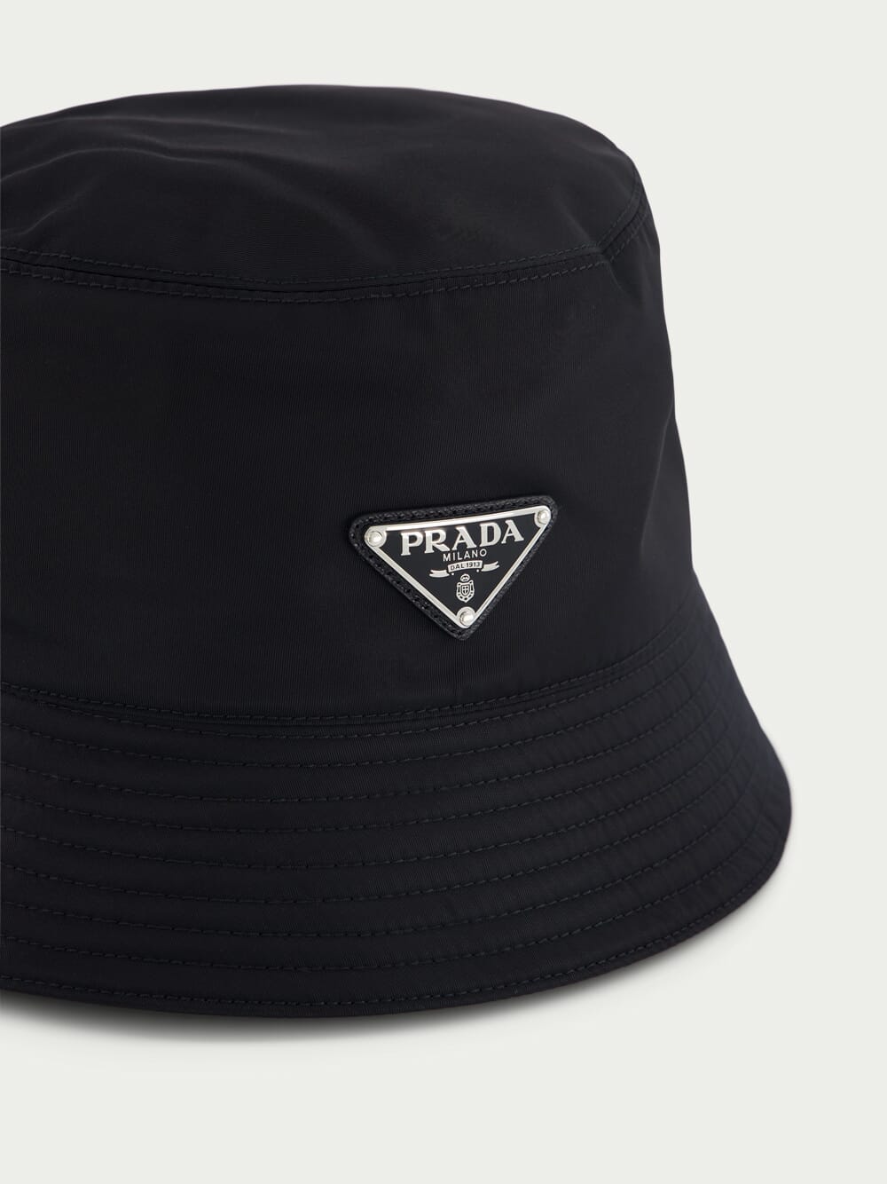 Re-Nylon Bucket Hat, a sustainable and stylish accessory that combines fashion and environmental consciousness. This hat is made of Re-Nylon, a revolutionary material crafted from regenerated nylon yarn (ECONYL®). The nylon used in its production is sourced from recycled plastic trash collected from the ocean, fishing nets, and textile waste fibers, reducing environmental impact. The hat is adorned with an enameled metal triangle logo, showcasing the brand's commitment to sustainability. It features a comfortable cotton lining, ensuring a soft and cozy fit.