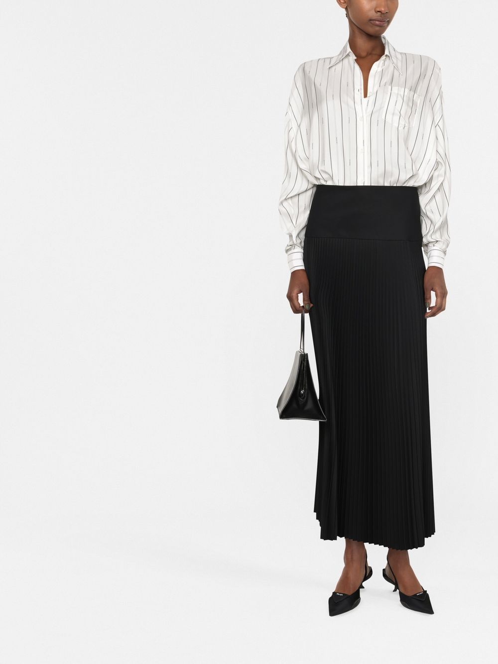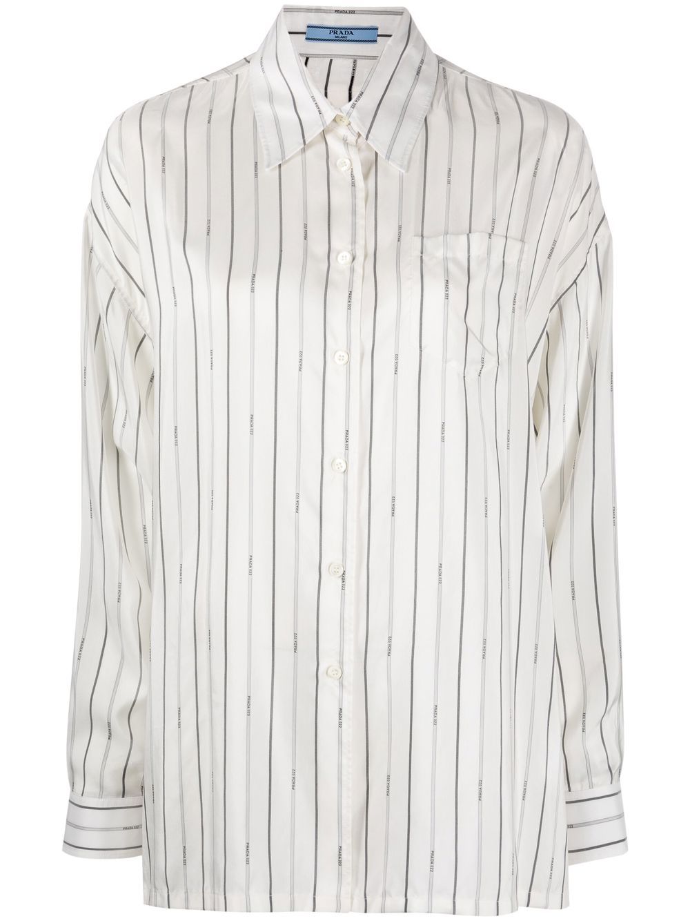 Prada ivory striped jacquard pongee shirt with patch pocket on the front and triangle logo with sartorial label.