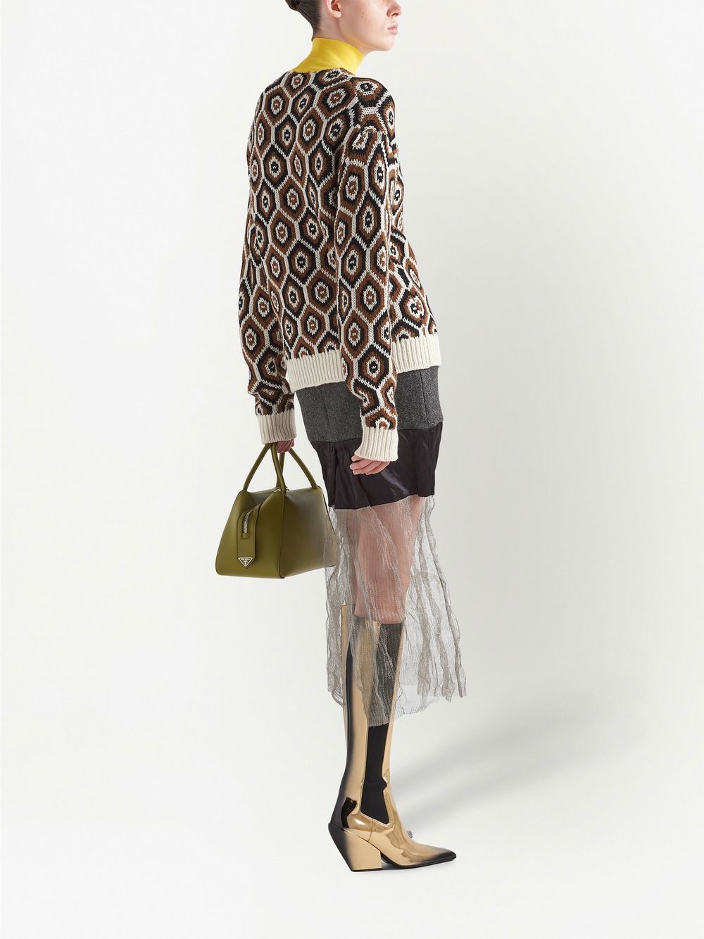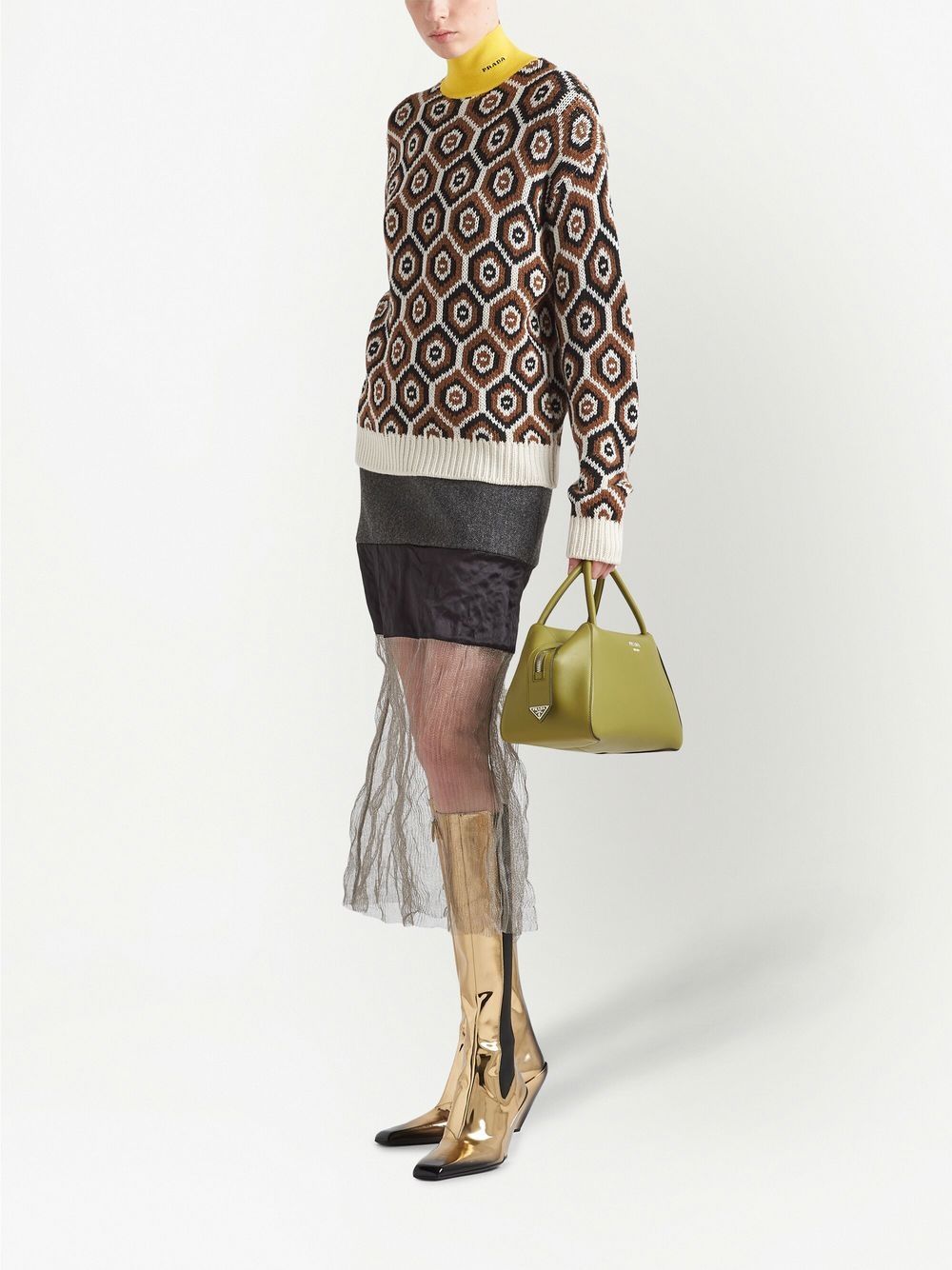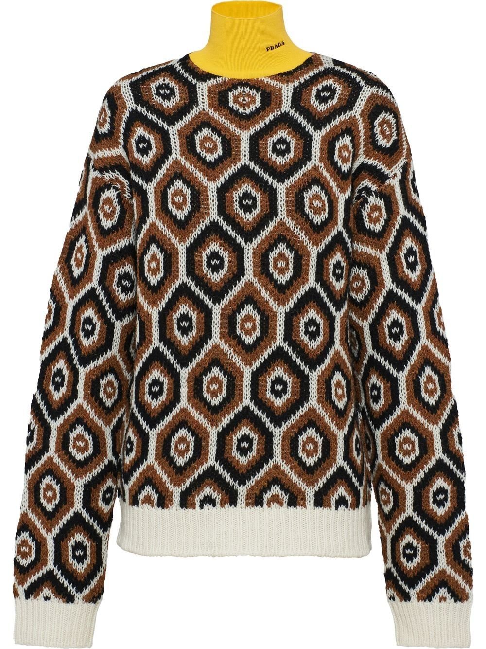Prada turtleneck cashmere jacquard jumper with regular shoulder and back zipper closure.