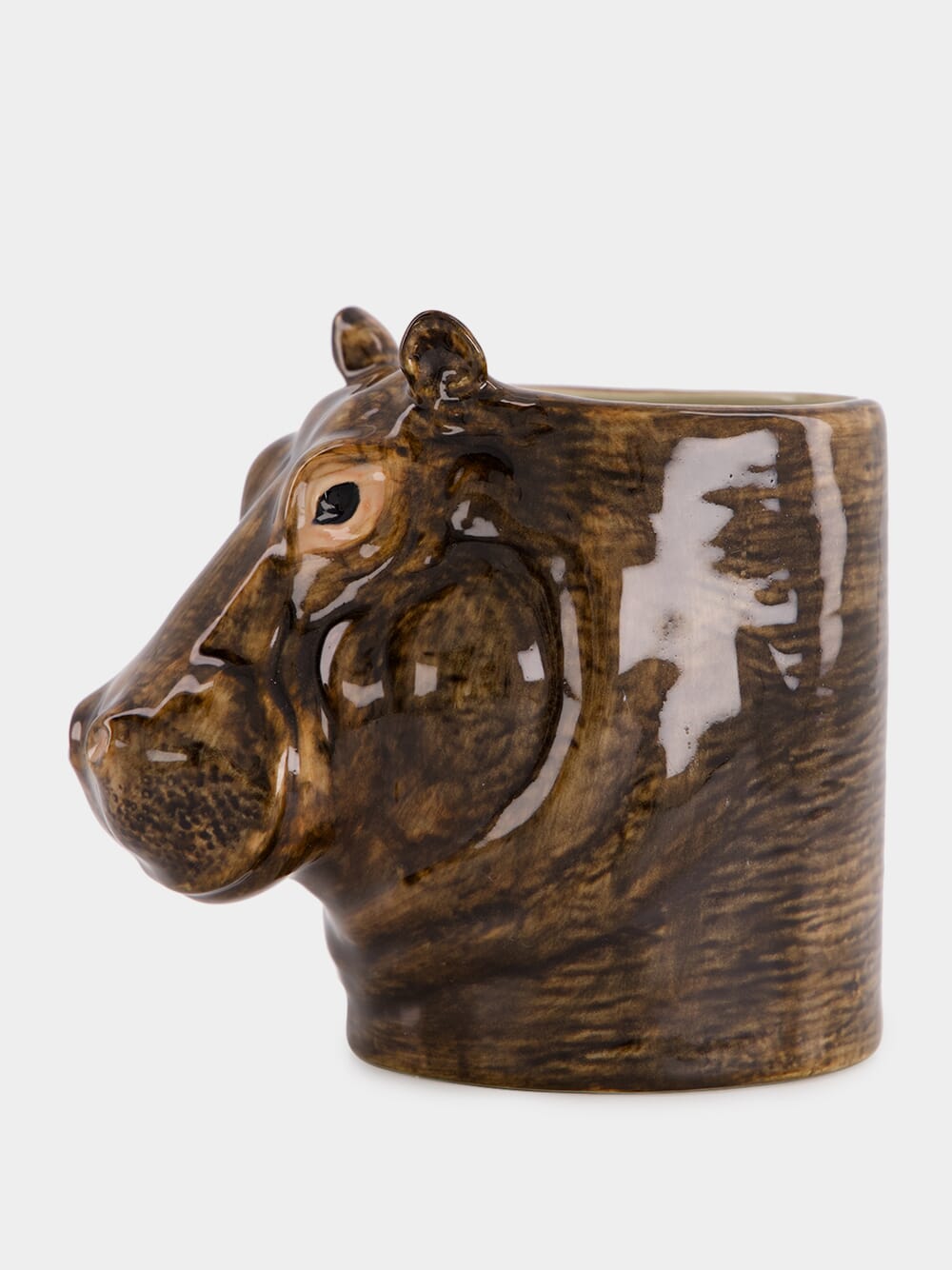 Quail Ceramics hippo pencil pot in handpainted stoneware.